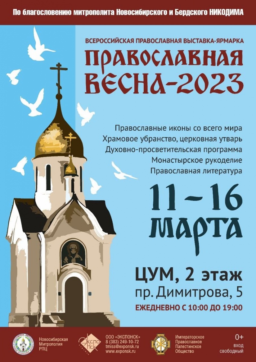 С 11 по 16 марта 2023 г. в нашем городе состоится ежегодная православная межрегиональная выставка «ПРАВОСЛАВНАЯ ВЕСНА-2023». Выставка проходит по благословению Митрополита Новосибирского и Бердского НИКОДИМА, при поддержке мэрии г. Новосибирска и Администрации Новосибирской области.