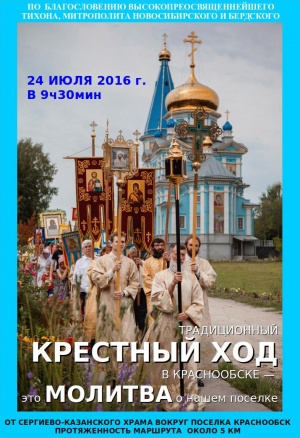 июля 2016 года, в Краснообске, пройдет традиционный Крестный ход, посвященный