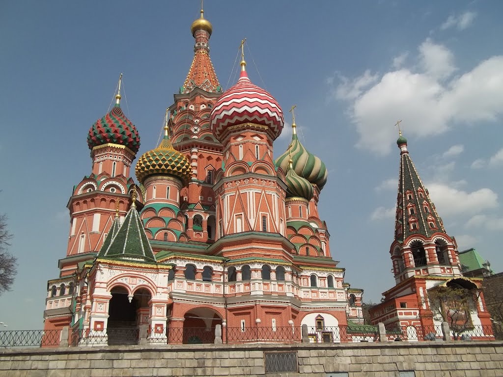 Покрова на Рву или Собор Василия БлаженногоОдин из самых известных храмов в честь праздника Покрова Пресвятой Богородицы и в тоже время неизвестный. О нем в день его престольго праздника мы и публикуем рассказ. Собор Покрова, что на рву, более известный как храм Василия Блаженного, расположен в южной части Красной площади, близ Спасских ворот Кремля, над спуском к Москве-реке. Он возник как памятник победам во время войны за покорение Казанского и Астраханского царств в 1552—1554 годах. В процессе военных действий после каждой значительной победы около стоявшей на этом месте белокаменной церкви Троицы возводилась небольшая деревянная церковь во имя того святого, память которого отмечалась в день победы. Таким образом, к окончанию войны на одной площадке оказалось восемь церквей. Участок, где ставились памятные храмы, был выбран не случайно. Здесь, на укрепленной высотке, в древности защищавшей стык Китай-города и Кремля и переправу через Москву-реку, близ Лобного места и Мытного двора, находился центр московского Торга.