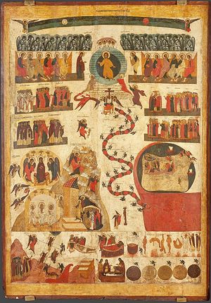 - «Средние», т.е. те, кто не успел при жизни очиститься от незначительных грехов, очищаются от них после смерти и через какое-то время восходят на небо: «Если истинно кающиеся отошли из этой жизни в любви к Богу, прежде чем успели достойными плодами удовлетворить за свои согрешения или проступки, их души очищаются после смерти (post mortem purgantur) очистительными страданиями. Но для освобождения их от этих страданий способствует им та помощь, которая оказывается им со стороны верных живых, как-то: молитвы, литургии, милостыня и прочие дела благочестия»[19].