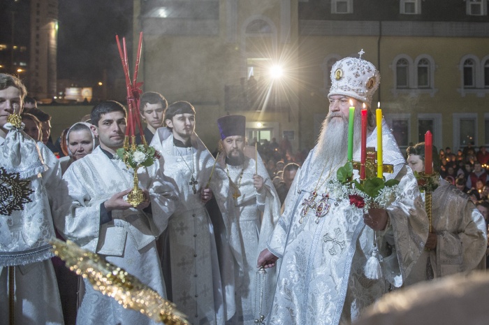 Пасхальные торжества в Вознесенском кафедральном соборе20 апреля в день Святой Пасхи Митрополит Новосибирский и Бердский Тихон возглавил праздничные богослужения в Вознесенском кафедральном соборе. 19 апреля в 24.00 Митрополит Тихон совершил крестный ход вокруг храма и Пасхальную утреню. 20 апреля Владыка возглавил Божественную литургию, после которой встретился с временно исполняющим обязанности губернатора Новосибирской области В.Ф. Городецким, председателем городского Совета депутатов Н.Н. Болтенко и председателем Законодательного собрания И.Г. Морозом. Почетные гости посетили Вознесенский кафедральный собор и обменялись с Владыкой пасхальными поздравлениями. Также 20 апреля Владыка Тихон совершил Пасхальную вечерню. По окончании богослужения Митрополит обратился к прихожанам с поздравлением и приветственным словом. "Мы готовили свои души Великим постом, чтобы осознать суть праздника Святой Пасхи. Все мы должны понимать, что как мы совершили подвиг поста, так и мир был спасен жертвой Христа. И сегодня мы радуемся ярким красным одеждам, красивым песнопениям, — сказал в своей проповеди Владыка. — Все было сотворено Божиим Словом. Богослужение — это и есть Божие Слово, оно должно возрождать наши души. Все, что мы делаем в Церкви, созидает Церковь внутри нас. Наша задача — не соблазняться прелестями грешного мира, а трудиться, чтобы достичь вечности. Пасха Христова — свидетельство вечной жизни".