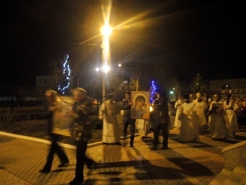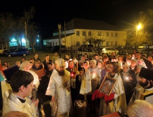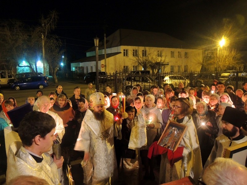 Пасха Христова в Кафедральном соборе св. ап. Андрея Первозванного г. Карасука (видео)В светлую пасхальную ночь с 19 на 20 апреля 2014 г. Его Преосвященство епископ Филипп, духовенство Кафедрального собора и его прихожане под пасхальный колокольный звон обошли крестным ходом вокруг собора. Затем была совершена пасхальная заутреня и Божественная литургия в Кафедральном соборе св. ап. Андрея Первозванного г. Карасука. По окончании Литургии Владыка поздравил священнослужителей собора и всех прихожан со светлым праздником Пасхи и наградил наиболее отличившихся прихожан архиерейским грамотами, приуроченными к празднику Святой Пасхи.