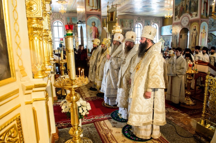 Престольный праздник в Вознесенском кафедральном соборе г. Новосибирска29 мая в великий двунадесятый праздник Вознесение Господне в кафедральном соборе Новосибирска. В честь престольного праздника Митрополит Тихон возглавил Божественную Литургию. Владыке сослужили епископ Барнаульский и Алтайский Сергий и епископат Новосибирской Митрополии: епископ Искитимский и Черепановский Лука, епископ Карасукский и Ордынский Филипп и епископ Каинский и Барабинский Феодосий. По окончании богослужения и крестного хода в Вознесенском соборе молились о мире на Украине. "Украина —колыбель русской цивилизации, там находятся мощи основателей нашего государства: Нестора Летописца, Ильи Муромца, Алипия Печерского. Поэтому Киев для нас — святой город. Будем молиться, чтобы Господь остановил кровопролитие и братоубийственную войну", — призвал православных Митрополит Тихон.