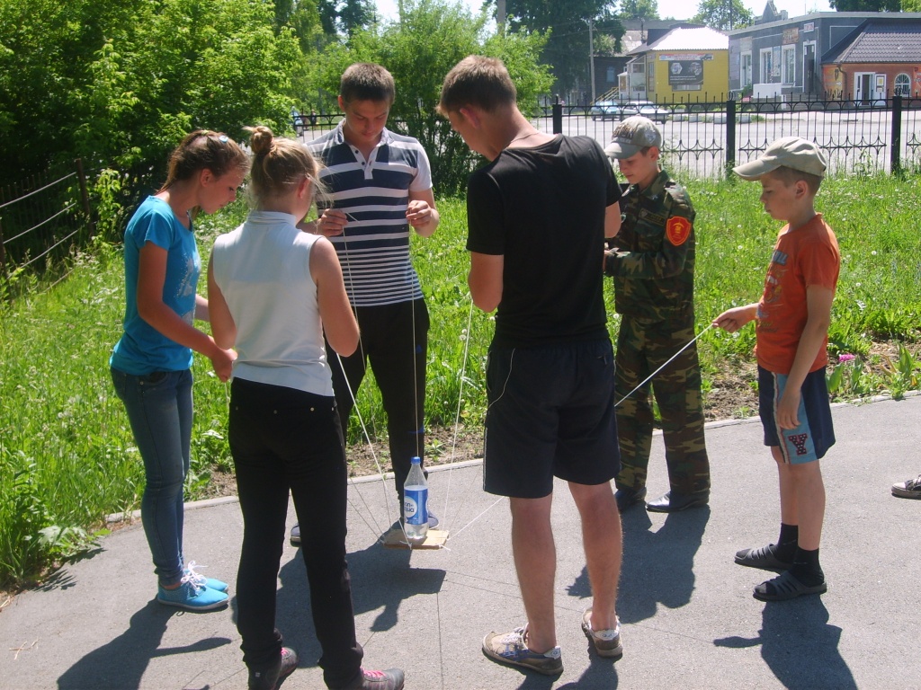 4. Конкурс «Ярило». Здесь нужно было проявить терпение и действительно стать одним целым, единой командой и перенести бутылку с небольшим количеством воды, преодолевая несколько раз препятствия.