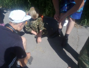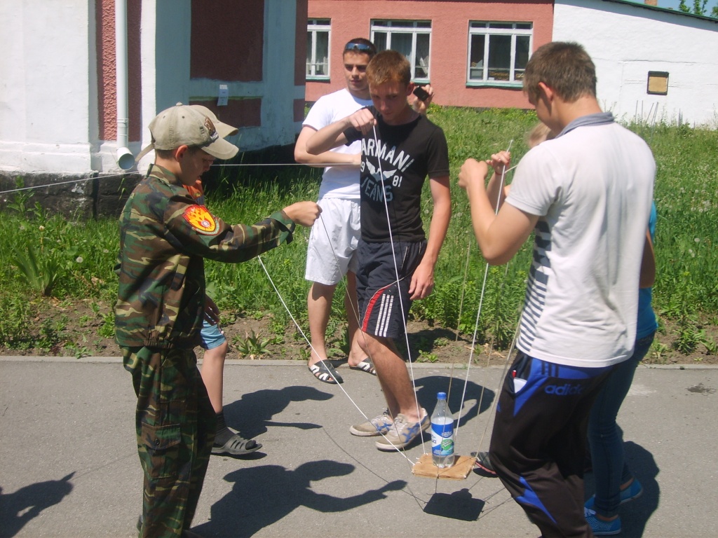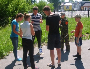 5. Конкурс «Найди мину». Двум участникам от команды завязывали глаза, и они с помощью щупов искали мины. Чем больше нашлось мин, тем больше команды получили баллов.