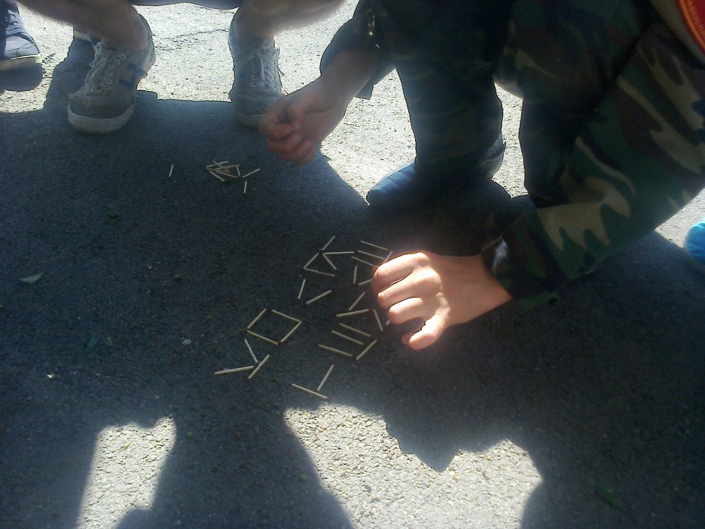 6. Конкурс «Знакомьтесь — это мы!», где ребята проявили фантазию и смекалку, составив из спичек свои имена.