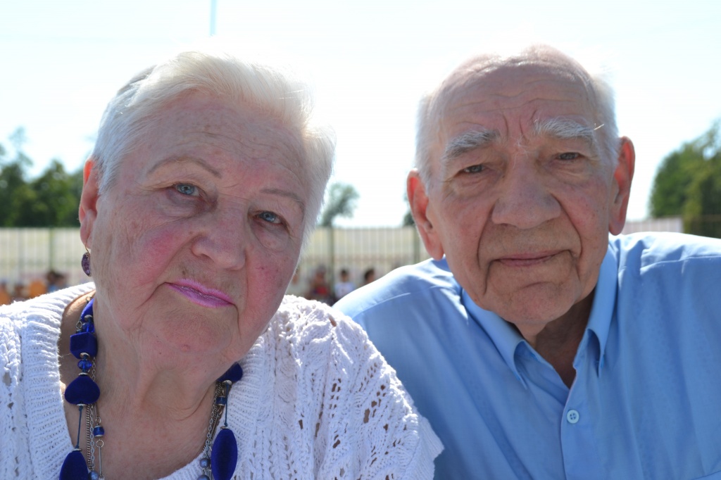 59 лет помогают друг другу супруги Илюшечкины. Пока в сквере разворачиваются народные игрища, на сцене парка чествуют бердские семьи.