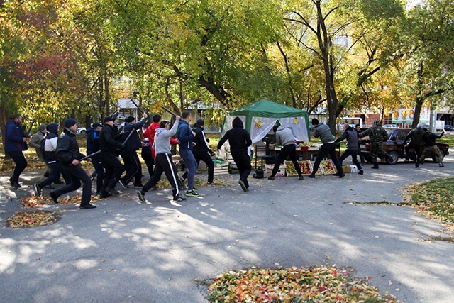 В городском парке произошло настоящее побоище: священник Александр Новопашин приступил к съемкам очередной картиныНа целый день небольшой парк в центре Новосибирска превратился в съемочную площадку. Священник Александр Новопашин снимает свой второй художественный фильм с рабочим названием «Рядом с нами».