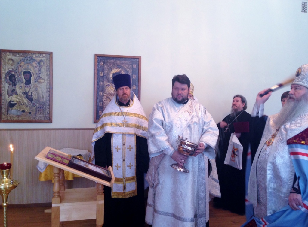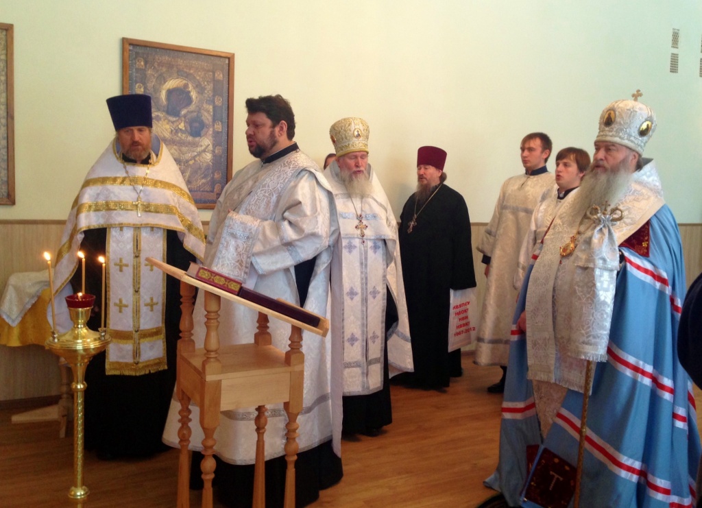 В военном училище работа по духовно-нравственному воспитанию курсантов ведется уже несколько лет - воинов духовно окормляет иерей Виктор Гужва. По инициативе руководства училища и курсантов в главном учебном корпусе было выделено помещение, в котором расположился храм во имя святого благоверного князя Димитрия Донского. Архиерейское освящение храма совершил сегодня Митрополит Новосибирский и Бердский Тихон. В проповеди после освящения Владыка сказал, что храм символично назван во имя князя Димитрия, соратника Преподобного Сергия Радонежского, 700-летие со дня рождения которого празднует в этом году весь православный мир. "Князю Димитрию нужно было утешение и благословение, и он получил их от Преподобного Сергия, который напутствовал его в бой со словами: победишь супостаты своя. Благодаря тем событиям Россия пошла по другому пути, стала развиваться, возродилась экономически, политически и духовно, - сказал Митрополит Тихон. - Очень радостно, что здесь, в военном институте, освящен храм. Я сам родился в семье воина-сибиряка, мои родители познакомились на фронте, прошли всю войну. Очень важно, чем живут наши солдаты и каков их духовный мир. Чувствуют ли они себя защитниками Родины, готовы ли положить душу свою за ближних?
