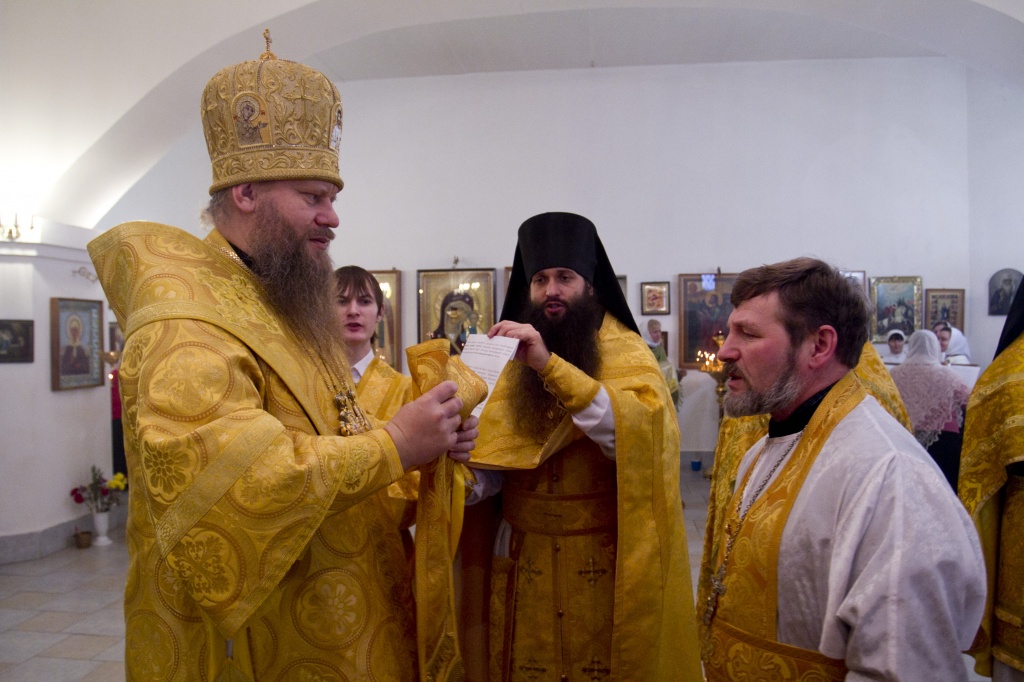 День памяти Святителя Спиридона Тримифунтского в Искитимской епархии (фоторепортаж)25 декабря 2014 года Православная Церковь празднует память Святителя Спиридона, епископа Тримифунтского. Божественную Литургию по случаю престольного праздника нижнего придела Кафедрального Собора города Искитима возглавил Преосвященный Лука, епископ Искитимский и Черепановский. Владыке сослужили клирики собора и других приходов епархии. За малым входом Архиерей вручил священнослужителям богослужебные награды: иерей Антоний Алексеев удостоен права ношения наперстного креста; иеромонах Николай (Пермяков), иерей Иаков Шумбасов и иерей Артемий Шумбасов - права ношения набедренника.