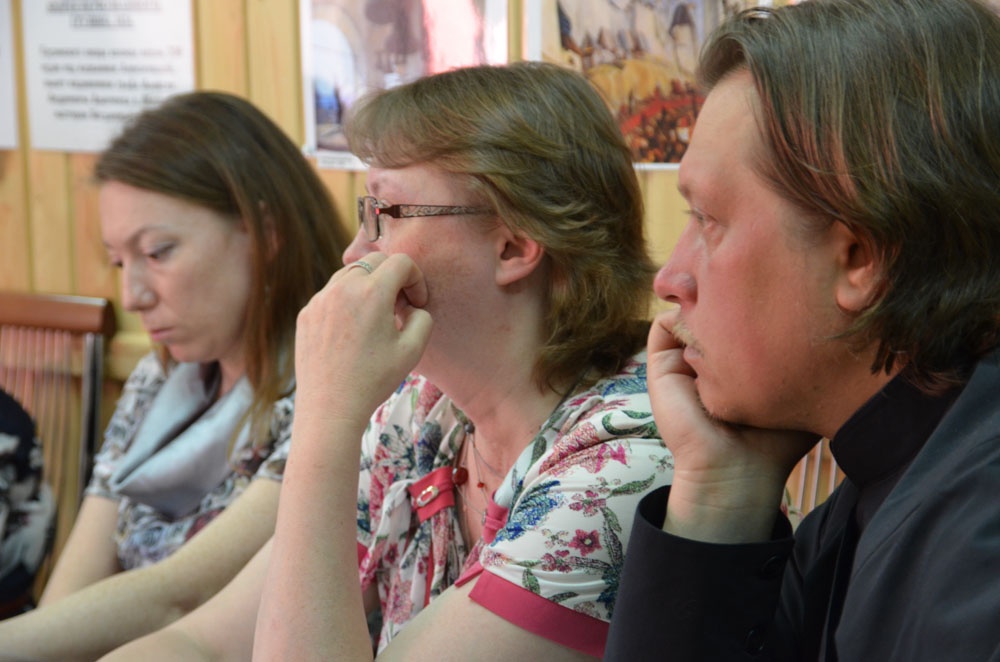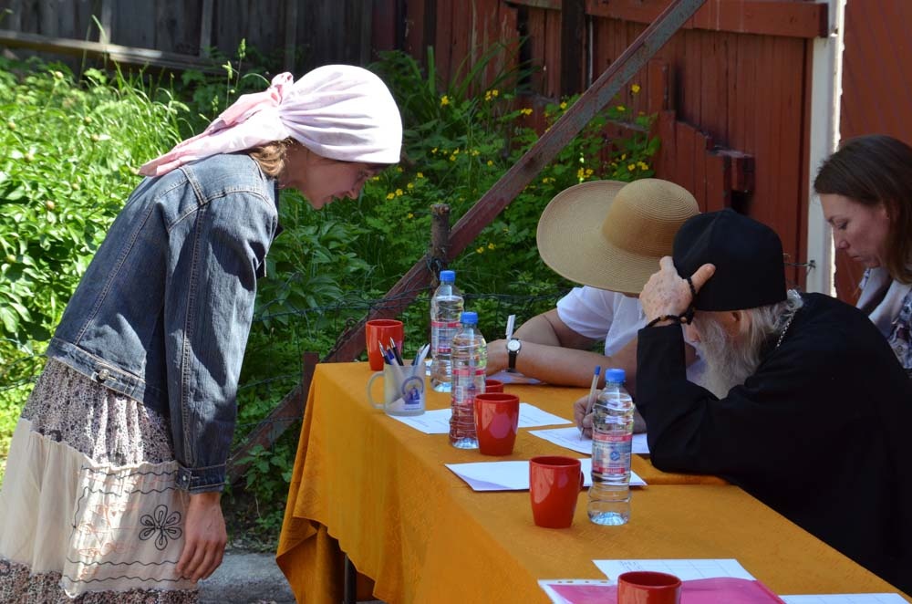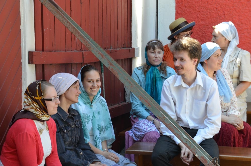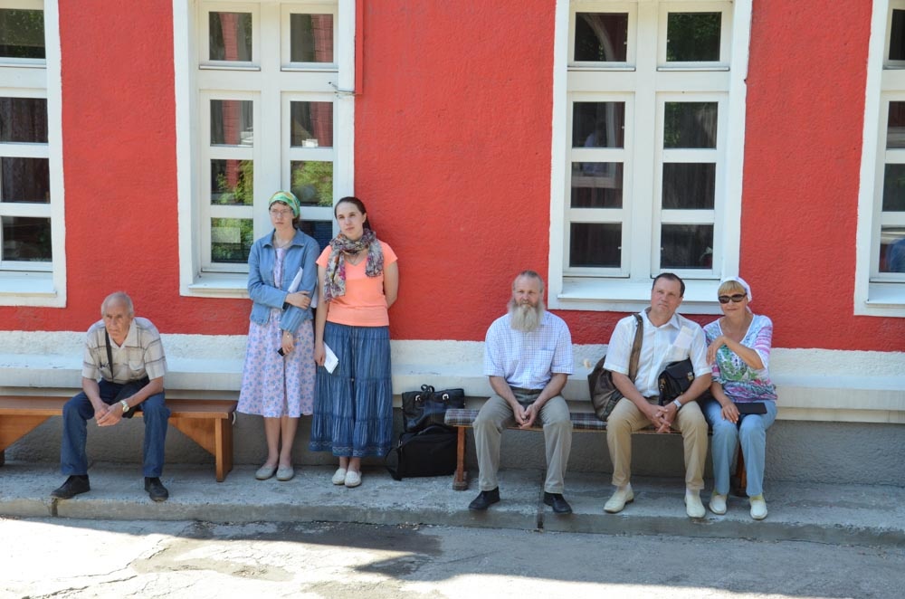 Перед началом экзамена все ученики пребывают в волнении, хоть внешне они и спокойны. Экзамен в школе звонарей – важное, торжественное событие не только для учеников. Чтобы поддержать учащихся, приехали недавние выпускники школы, теперь уже церковные звонари: Евгений Сверликов из Троице-Владимирского собора Новосибирска и Юрий и Ирина Карбаевы из Петропавловского храма в Кудряшах. Юрий записывает все звоны на видео: «Мы приехали не только поддержать выпускников, но и поучиться у них чему-то новому», – отмечает он.