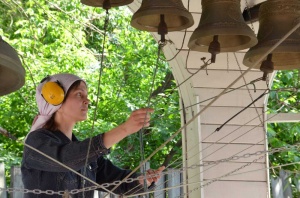Закончившая в прошлом году школу звонарей Екатерина Малыгина тоже остаётся на экзамене до конца – нужно поддержать маму, которая в этом году тоже стала звонарем и уже начала нести послушание в родном храме.