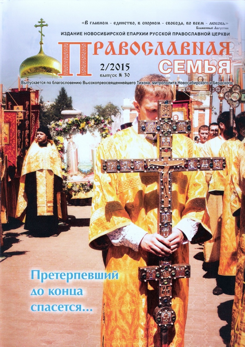 Вышел новый номер журнала "Православная семья"Мы рады сообщить, что увидел свет второй номер журнала "Православная Семья" за 2015 год. Тема номера"Претерпевший до конца спасется...". Приобрести его можно обратившись в Сергиево-Казанский храм п. Краснообск. Обзор номера можно прочитать в колонке редактора, которую мы приводим ниже. Главная скорбь, которая не минует ни одного из живущих на земле – смерть. Как преодолеть страх смерти – об этом размышляет автор рубрики «Мысли вслух». Но бывают и мнимые, надуманные скорби, запутавшись в которых, человек теряет смысл жизни. Как избежать маленьких трагедий – в рубрике «Ваше мнение». Но если трагедия не маленькая, а такая, которая переворачивает всю жизнь? Как жить, когда мир рухнул? Это вечный вопрос и отвечает нам на него из седой древности многострадальный Иов. Читайте его историю в рубрике «О вечном». Как родителям подготовить своих детей к неизбежным жизненным тяготам, к терпеливому несению своего креста, научить их понимать смысл страдания, и правильно выходить из испытаний: об этом мудро и взвешенно говорит автор статьи в рубрике «Опыт воспитания». Но как жить, когда, кажется, Бог не слышит тебя? Это состояние знаком каждому верующему человеку. Так считает автор рубрики «О личном». Читатели журнала вновь побывают в Греции вместе с автором рубрики «Паломничество». Как всегда, мы приготовили новые интересные рассказы для детей, продолжение повести «Дедушкин чердак» для подростков, тематическую крестословицу о Ноевом ковчеге. Литературные странички продолжают тему «Времена года», литературный обзор в номере посвящен книгам недавно усопшей православной писательницы Юлии Вознесенской.