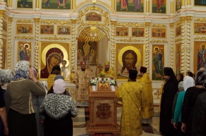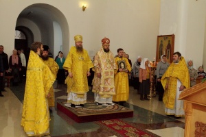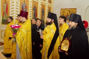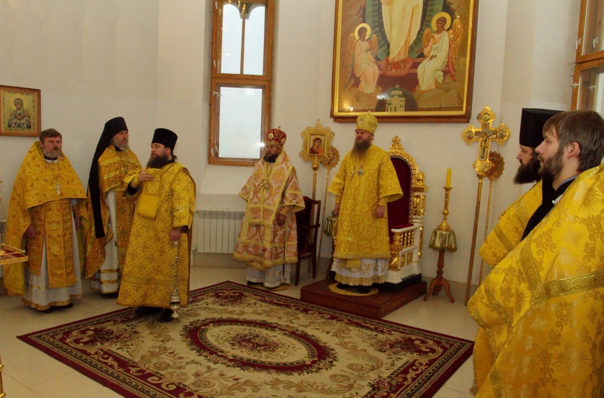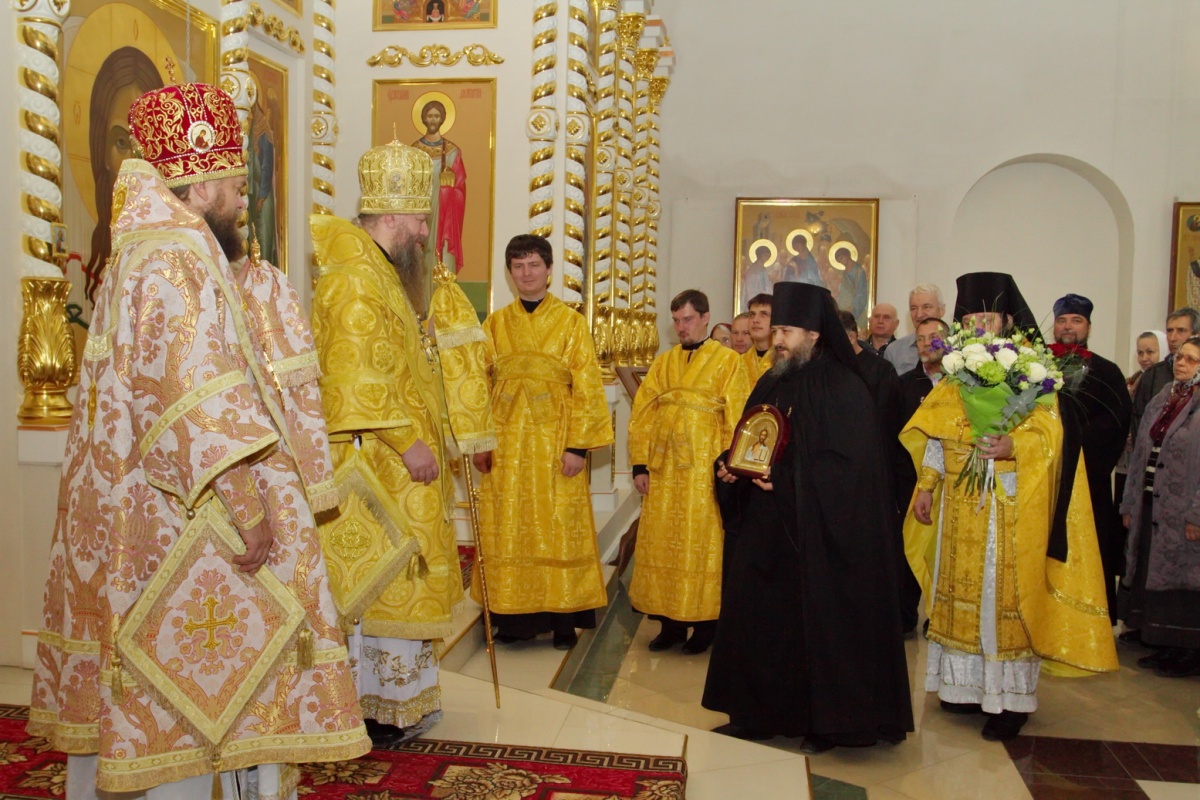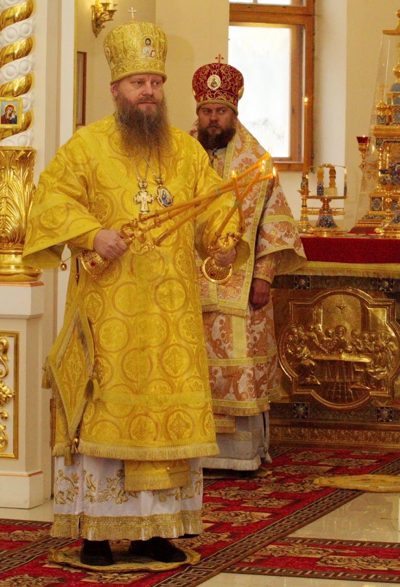 Поздравить владыку приехал Преосвященнейший Филипп, епископ Карасукский и Ордынский, а также духовенство и миряне Искитимской епархии. По окончании литургии епископ Филипп обратился к владыке с поздравлением. Он отметил, насколько нелегок крест архиерейского служения, пожелав нашему архипастырю Божией помощи, здоровья и сил в трудах на благо Церкви. Также с поздравлениями обратились благочинные епархиальных округов. В завершении слова поздравления прозвучали от Раисы Ильиничны Полянской, постоянного благодетеля и строителя храмов в городе Искитиме. По окончании богослужения все собрались за праздничным столом.