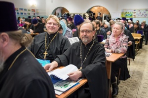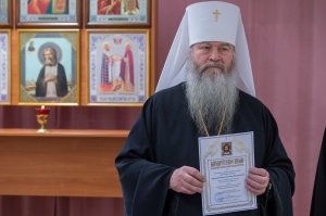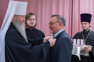Владыка подчеркнул, что «врозь столько не было бы сделано», и именно «совместный труд привел к таким хорошим результатам». Он сердечно поблагодарил соратников, потрудившихся в уходящем году на благо города, и наградил особо отличившихся памятными Епархиальными знаками, юбилейными медалями, Благодарственными письмами. Были награждены юбилейными медалями «1000-летие преставления святого равноапостольного князя Владимира» - начальник Новосибирского областного клинического бюро судмедэкспертизы Владимир Павлович Новоселов, начальник управления физической культуры и спорта мэрии города Новосибирска Сергей Александрович Ахапов, директор МБУ ДОД СДЮСШОР «Центр игровых видов спорта» Владимир Александрович Бочкарев. Также юбилейные медали были вручены мастерам спорта международного класса по пауэрлифтингу Антону Сергеевичу Дементьеву и Максиму Петровичу Остертаку. Благодарственными письмами Владыка наградил руководителя отдела по делам молодежи Новосибирской Митрополии иерея Иоанна Кизюн-Войтовича; консультанта по созависимостям православного реабилитационного центра во имя преподобного Серафима Саровского Наталию Яковлевну Романову за реализацию проекта «Мы вместе»; вице-президента МРБО «Линия Жизни» Бориса Викторовича Кислого за реализацию проекта «Ресоциализация алко - и наркозависимых бездомных граждан»; настоятеля храма в честь Благовещения Пресвятой Богородицы иерея Антония Коваленко за участие в фестивале мультипликационных фильмов «Радость Миру»; психолога-консультанта Комплексного центра реабилитации, рекреации и развития Марию Валериевну Пашкову за проект «Художественное образование в Сибири»; младшего научного сотрудника Колыванского краеведческого музея Елену Евгеньевну Савельеву за проект «3999-я верста на Московско-Сибирском тракте». Награжденным пропели «Аксиус», и Владыка предоставил слово заместителю мэра Геннадию Павловичу Захарову, который зачитал собранию обращение мэра Новосибирска. В обращении говорилось, что «история города неразрывно связана с развитием Новосибирской Митрополии», которая проводит работу по духовно-нравственному и гражданско-патриотическому воспитанию молодежи, ведет просветительскую, миссионерскую и благотворительную деятельность. «Мы ценим благородный труд и поддерживаем социально-значимые проекты», - сказал заместитель мэра. Следом выступила начальник Управления по связям с религиозными и общественными организациями Министерства региональной политики Новосибирской области Анна Владимировна Лопарева. Она передала ежегодному Епархиальному собранию приветственное слово от губернатора Новосибирской области, поздравила православных христиан с окончанием года и выразила уверенность, что в новом году «нас ждут новые интересные совместные проекты». Владыка поблагодарил представителей городской и областной власти за тёплые слова, пожелав всем помощи Божией. Дмитрий Кокоулин, фото В. Осинцев