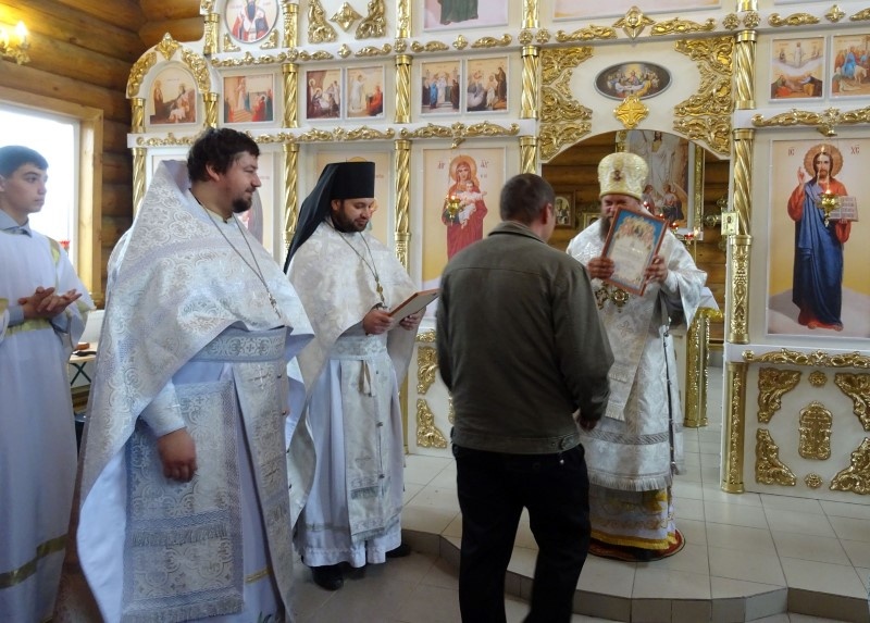 На Литургии присутствовали представители администрации Баганского района, благодетель храма Валерий Анатольевич и прихожане.
