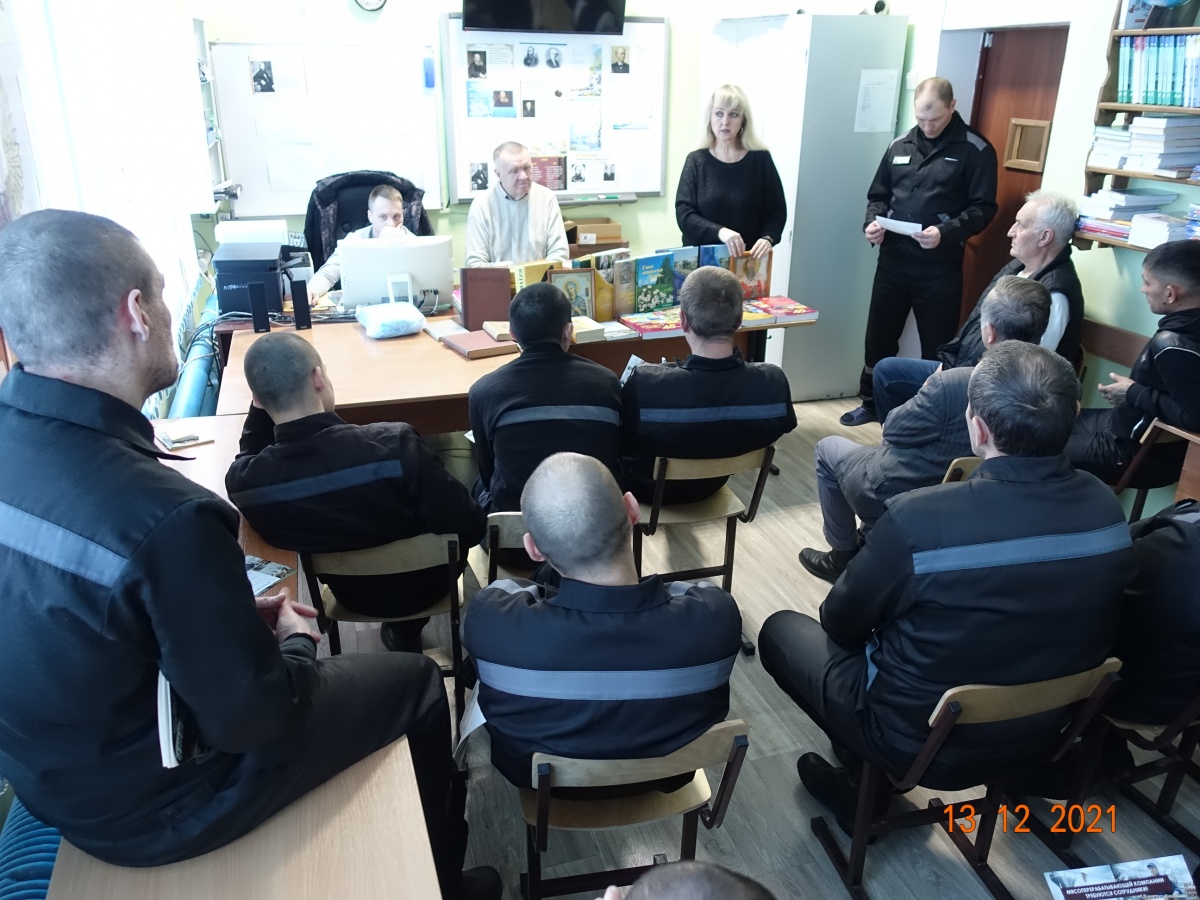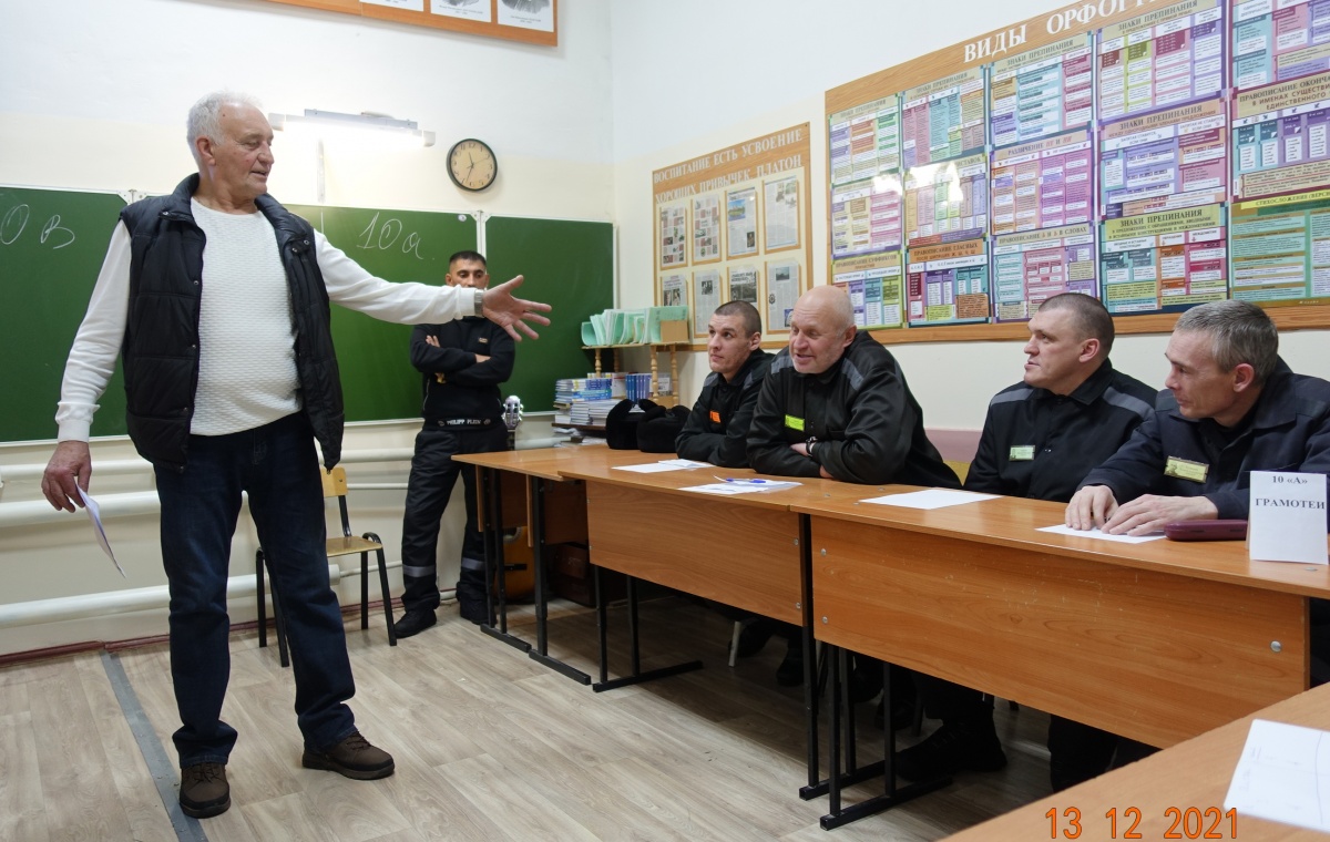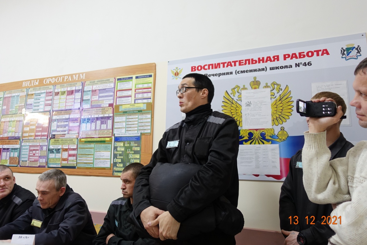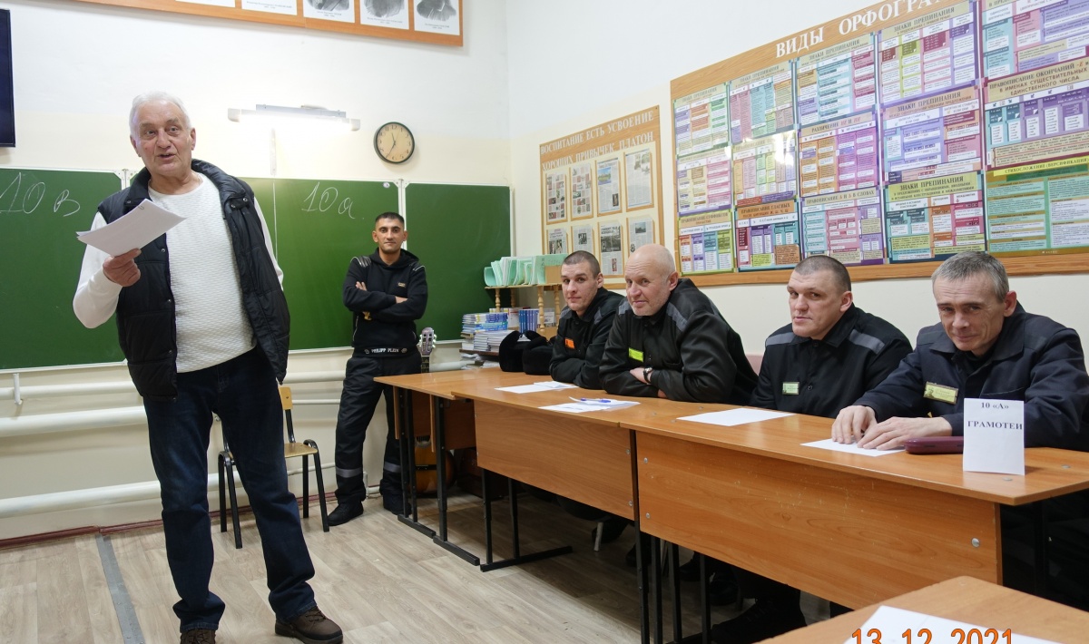 Интеллектуальный конкурс «Грамотеи против знатоков» прошел в колонии № 213 декабря 2021года, на территории исправительной колонии строгого режима №2, в вечерней (сменной) школе №46, прошел конкурс «Грамотеи против знатоков». В конкурсе приняли участие команды из двух десятых классов. Интеллектуальный конкурс-игра прошла в семь этапов разноуровневых заданий, провел ее учитель русского языка Александр Иванович Абашев. Цель и задачи мероприятия: расширить знания учащихся о русском языке, создать условия для повышения интеллектуального и культурного уровня учащихся, сформировать культуру речевого общения, активизировать мыслительную деятельность учащихся, развивать интеллект, память, внимание. Данный конкурс позволяет показать учащимся, как увлекателен, разнообразен, неисчерпаем мир слова, мир русской грамоты. Игру команд оценивало жюри: председатель жюри, руководитель «Новосибирского общества книголюбов», редактор РИЦ «Светоч», член союза журналистов РФ- Наталья Владимировна Пендюрина; директор школы, полковник внутренней службы -Арвит Райнгартович Цильке ; учитель русского языка и литературы Кныш Ростислав Александрович; учитель английского языка Барабанщиков Сергей Михайлович. Обе команды прошли семь этапов сложных заданий. «Грамотеи» оказались умнее и находчивее. Счет:30-32. Всем участникам интеллектуального конкурса были вручены призы: сборники стихов Новосибирских поэтов, блокноты, ручки. В школьную библиотеку переданы книги от «Новосибирского общества книголюбов», икона Божией Матери Иерусалимская и Икона Святого священномученика Сильвестра. …Архиепископ Сильвестр был заключен в тюрьму, где в течение двух месяцев его истязали, требуя, чтобы он принес покаяние за христианскую деятельность. Ничего не добившись, безбожники подвергли святителя жестокой и мучительной смерти. Прибив его руки гвоздями к полу и таким образом распяв, они раскаленными шомполами прожигали тело, а затем раскаленным докрасна шомполом пронзили сердце. Архиепископ Сильвестр принял мученическую кончину 26 февраля 1920 года в Омской тюрьме. член союза журналистов