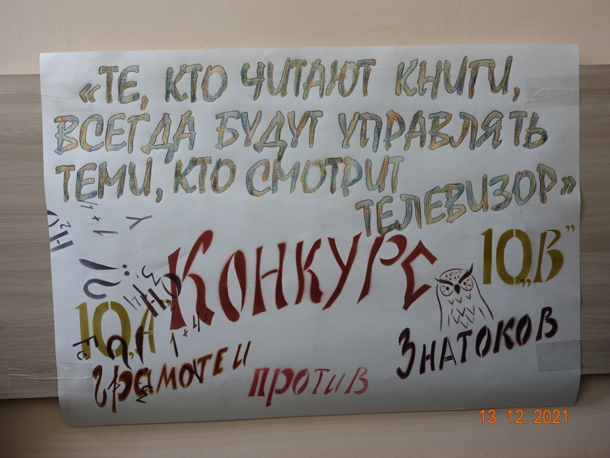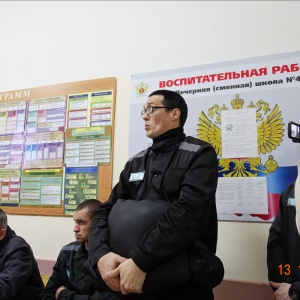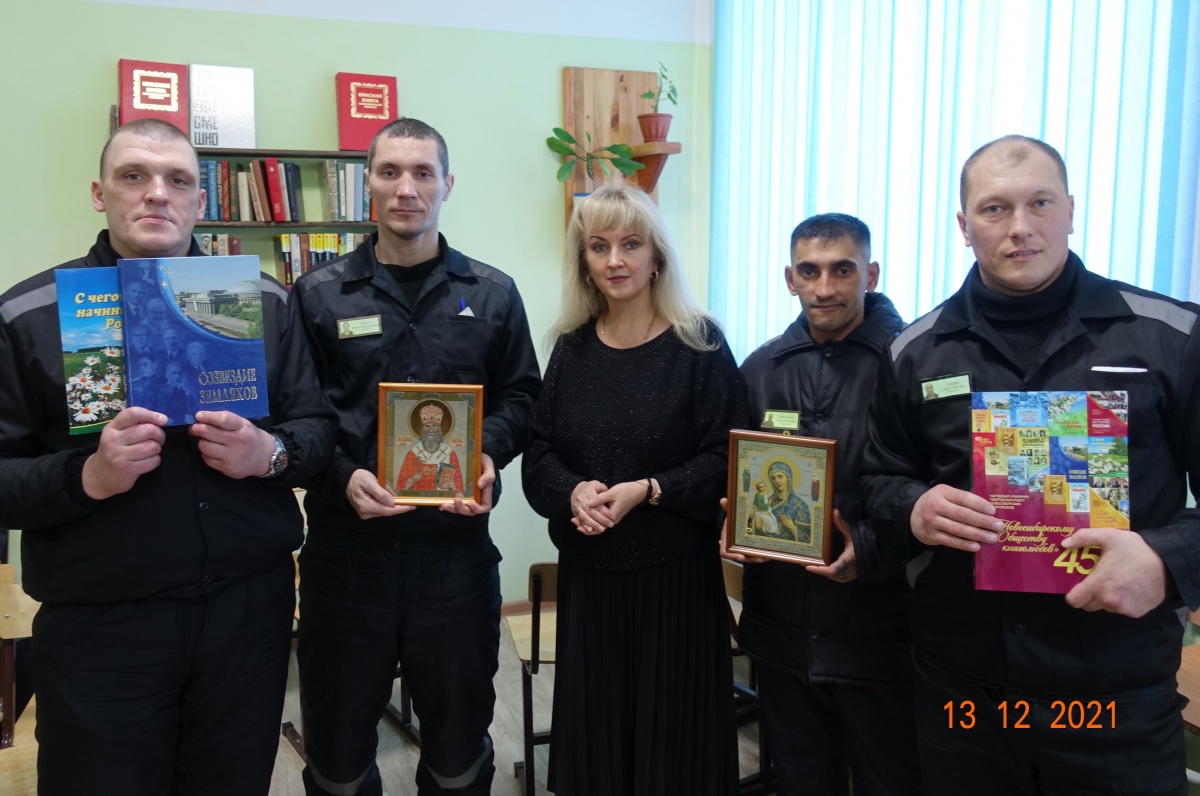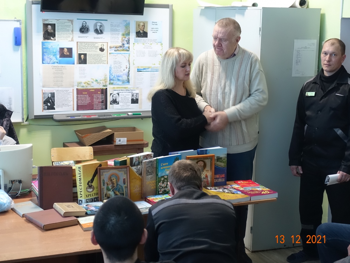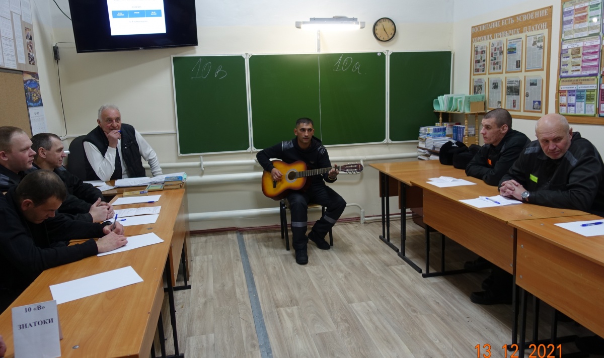 Интеллектуальный конкурс «Грамотеи против знатоков» прошел в колонии № 213 декабря 2021года, на территории исправительной колонии строгого режима №2, в вечерней (сменной) школе №46, прошел конкурс «Грамотеи против знатоков». В конкурсе приняли участие команды из двух десятых классов. Интеллектуальный конкурс-игра прошла в семь этапов разноуровневых заданий, провел ее учитель русского языка Александр Иванович Абашев. Цель и задачи мероприятия: расширить знания учащихся о русском языке, создать условия для повышения интеллектуального и культурного уровня учащихся, сформировать культуру речевого общения, активизировать мыслительную деятельность учащихся, развивать интеллект, память, внимание. Данный конкурс позволяет показать учащимся, как увлекателен, разнообразен, неисчерпаем мир слова, мир русской грамоты. Игру команд оценивало жюри: председатель жюри, руководитель «Новосибирского общества книголюбов», редактор РИЦ «Светоч», член союза журналистов РФ- Наталья Владимировна Пендюрина; директор школы, полковник внутренней службы -Арвит Райнгартович Цильке ; учитель русского языка и литературы Кныш Ростислав Александрович; учитель английского языка Барабанщиков Сергей Михайлович. Обе команды прошли семь этапов сложных заданий. «Грамотеи» оказались умнее и находчивее. Счет:30-32. Всем участникам интеллектуального конкурса были вручены призы: сборники стихов Новосибирских поэтов, блокноты, ручки. В школьную библиотеку переданы книги от «Новосибирского общества книголюбов», икона Божией Матери Иерусалимская и Икона Святого священномученика Сильвестра. …Архиепископ Сильвестр был заключен в тюрьму, где в течение двух месяцев его истязали, требуя, чтобы он принес покаяние за христианскую деятельность. Ничего не добившись, безбожники подвергли святителя жестокой и мучительной смерти. Прибив его руки гвоздями к полу и таким образом распяв, они раскаленными шомполами прожигали тело, а затем раскаленным докрасна шомполом пронзили сердце. Архиепископ Сильвестр принял мученическую кончину 26 февраля 1920 года в Омской тюрьме. член союза журналистов