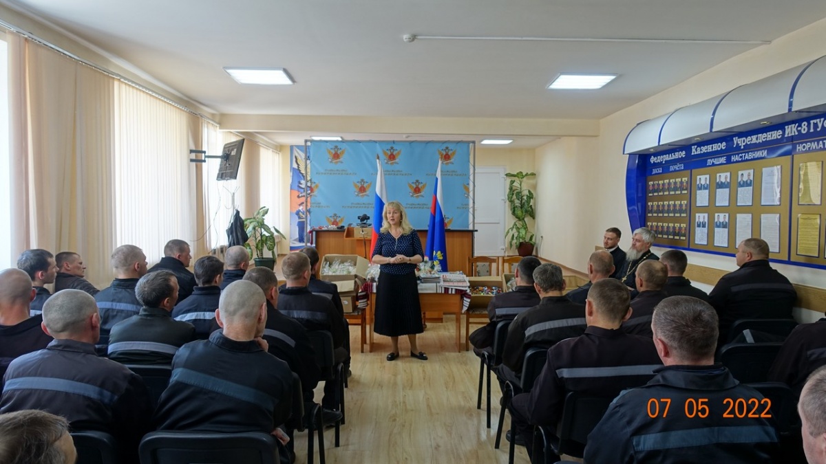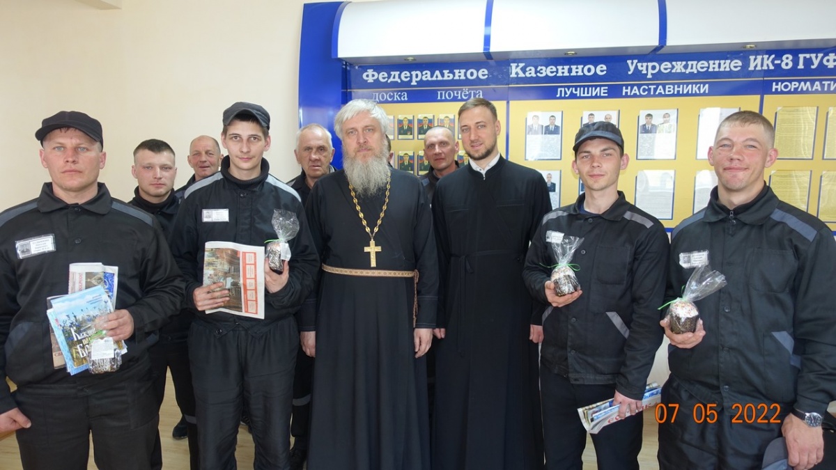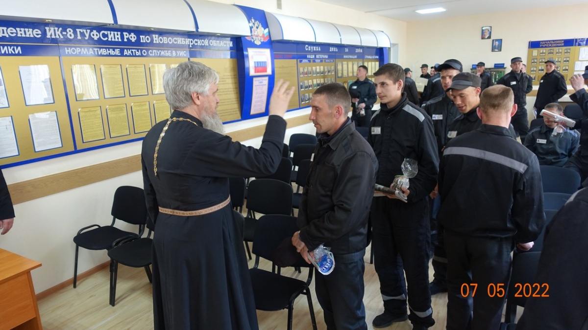 Пасхальная встреча состоялась в колонии-поселения №87 мая 2022 года, священнослужители Вознесенского Кафедрального Собора Новосибирской Епархии- иерей Владимир Добринов, диакон Сергий Ходаковский и руководитель клуба православных авторов «В начале было Слово» Наталья Пендюрина посетили колонию-поселения №8. В начале встречи были пропеты пасхальные часы, затем отец Владимир - руководитель Центра милосердия при Вознесенском кафедральном соборе произнес пасхальную проповедь и поздравил всех с праздником Великой Пасхи. Осужденным были вручены пасхальные гостинцы - освященные куличи, иконы и духовно-просветительская литература. Так же на встрече говорили о приближающемся Дне Победы в Великой Отечественной войне и о любви к Родине. Прозвучали стихи К. Симонова, Б. Пастернака, А. Ахматовой, Р. Гамзатова. Стихи о войне - это не только поэтическое, но и историческое наследие. Благодаря литературным произведениям мы можем узнать о том, что пережили наши предки в суровые военные годы. Читая стихи о войне, мы вместе с их героями переживаем эти горькие события и учимся беречь мир. Встреча прошла в торжественной и очень дружеской обстановке. член союза журналистов РФ Н.Пендюрина-Капина