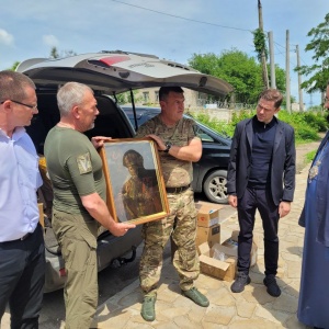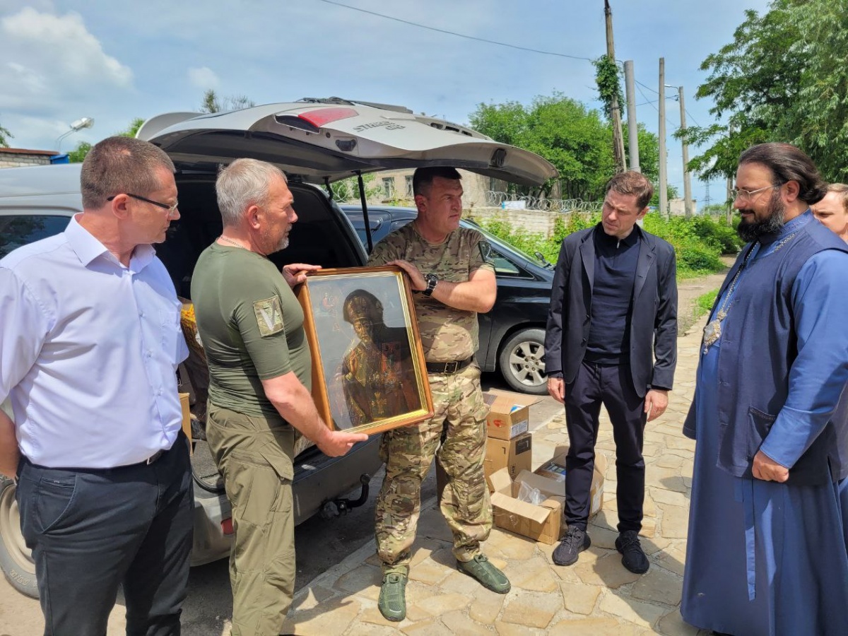 ![]() Новосибирские христиане передали икону архиепископу БеловодскомуНакануне Дня Святой Троицы образ XIX века в храм Всехсвятского подворья Свято-Вознесенского монастыря передал депутат Госдумы РФ Александр Аксёненко и его товарищи Сергей Шилов и Сергей Мажирин. Пятое авто в рамках проекта «УАЗ на Донбасс» успешно добралось до Луганска. А с ними в родной храм вернулся образ святителя Николая Чудотворца, отреставрированный в «Столице Сибири». Святитель Николай Чудотворец – один из самых почитаемых святых Православного мира, так что весьма промыслительно, что образ угодника Божия оказался в родном храме накануне Дня Святой Троицы. «Эта икона святителя была написана на Украине в XIX веке. Находилась в Луганске, в храме Всех святых, построенном над могилой местночтимого святого Филиппа Луганского. Икона была сильно повреждена в результате боевых действий. Наши новосибирские реставраторы взялись её восстановить», – рассказал Александр Аксёненко на своей странице ВК. На территории Всехсвятского подворья Свято-Вознесенского мужского монастыря Луганской епархии (храм над могилой местночтимого святого Филиппа Луганского, ул. Днепровская 45А) икону встретил не только наместник подворья архимандрит Иоанн (Сухина), но и архиепископ Беловодский Павел (Валуйский), викарий Луганской епартии РПЦ. Парламентарий и его товарищи благоговейно водрузили образ на аналой. Перевозку реликвии из Новосибирска в Луганск осуществили автор благотворительного проекта «УАЗ на Донбасс» Сергей Шилов и зампред «Союза отцов России» в Новосибирской области Сергей Мажирин. Вместе с иконой святителя Николая луганским священнослужителям передали и друue. помощь из Новосибирска – нательные крестики и пояски для военнослужащих, а также христианскую литературу для верующих. Саму машину, на которой Сергей Шилов и Сергей Мажирин везли икону, также передали местным волонтерам для развоза гуманитарных грузов по зоне СВО. Помимо иконы из Новосибирска в ЛНР прибыли три фуры гуманитарного груза и пять автомобилей для военнослужащих из Новосибирской области. Часть их груза – крупы, муку, консервы, сушки, мороженое, игрушки, канцелярские принадлежности и медикаменты – Александр Аксёненко передал в «Луганский перинатальный центр» и «Республиканский социально-реабилитационный центр для несовершеннолетних». Напомним, что накануне отъезда из Новосибирска машину и восстановленную икону в Александро-Невском соборе по благословению митрополита Новосибирского и Бердского Никодима освятил протоиерей Константин Работа. Благословляя волонтёров в дорогу, он напомнил, что святитель Николай Чудотворец является покровителем путешественников.