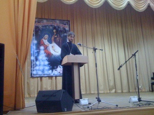 Следующий докладчик, Н.Н. Шелегин, учитель ОБЖ МОУ СОШ №2 г. Искитима, провел параллель между верой и армией в России и на примере истории показал, что вера необходима для солдата не менее чем пища.