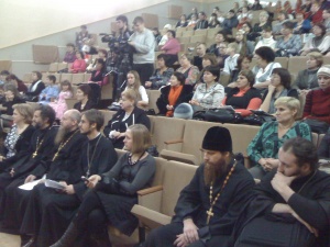 Основное же время было посвящено презентации проектов, посвященных взаимодействию между образовательными учреждениями и Церковью. Из всех пришедших на чтения, основную массу составили учителя средних образовательных школ, для которых тема чтений является наиболее актуальной. Как почетные гости были представлены наместник завьяловского мужского Покровского монастыря игумен Лука (Волчков), благочинный Юго-Восточного округа иерей Игорь Затолокин, насельник завьяловского мужского Покровского монастыря игумен Гурий (Прокичев), руководитель Общеепархиального духовно-просветительского центра иерей Валериан Давыдов и все представители докладов.