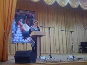 Со стороны учителей первой представила свой доклад Наталья Николаевна Голикова, учитель начальных классов МОУ СОШ №3 «Пеликан» г. Бердск. Именно с этой работой она стала победителем Всероссийского конкурса «За нравственный подвиг учителя», разработав авторскую программу «Духовно-нравственное развитие обучающихся», с которой отправится на XX Рождественские Образовательные Чтения в Москву. Ею была предложена модель под названием «Лаборатория непрерывного образования», главным принципом которой является нравственное образование не только на уроках «Основы православной культуры», но и на всех остальных предметах. При этом донести до детей знания о православии не является главной целью урока, а, наоборот, незаметно проскальзывает в ходе занятия. «Стучитесь, и вам откроют и сердца и двери», - так Наталья Николаевна завершила свое выступление.