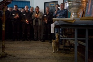 В тюрьме по доброй волеИнтервью Преосвященного епископа Карасукского и Ордынского Филиппа после посещения Исправительной колонии № 15/91 Главного управления Федеральной службой исполнения наказаний по Новосибирской области в с. Табулга Чистоозёрного района. Владыка, Вы впервые в исправительном учреждении? Что вы почувствовали, когда переступили его порог? Расскажите о своих впечатлениях. - Посещение исправительного учреждения для меня не в первый раз. Будучи руководителем отдела по духовному окормлению детей-инвалидов и детей, оставшихся без попечения родителей Новосибирской епархии мне приходилось навещать своих подопечных – воспитанников или выпускников детских домов, попавших в места лишения свободы. Но – дети и подростки – это одно, а взрослые, состоявшиеся люди – это совсем другое. Когда ты попадаешь за высокий забор с колючей проволокой, то понимаешь, что идёшь с духовной миссией, что рядом с тобой священнослужители, что тебя туда приглашали, ждут, что ты идёшь сказать слово Божие людям. Но когда переступаешь порог, и за тобой начинают закрываться железные двери, щёлкают засовы, то невольно испытываешь чувство страха, неопределённости. В поездке меня сопровождали благочинный Купинского благочиния иеромонах Мелхиседек (Свистелин) и руководитель епархиального отдела по тюремному служению иерей Михаил Прут. Посещение колонии началось со встречи с администрацией учреждения. Руководство и служащие по отношению к нам были настроены доброжелательно. Нам показали изолятор. Когда осужденного переводят в тюрьму, он в течение 2-х недель находится в изоляторе – это своего рода адаптация, там допустимы некоторые послабления в отличие от режима колонии. После этого заключённого переводят на общий режим. Что ещё поразило – так это мрачная обстановка: везде решётки, колючая проволока, вся одежда у заключённых – куртки, шапки, обувь – всё чёрного цвета. Бараки старые, тюрьма 1956 года постройки. Там одна асфальтированная дорога, вся остальная территория засыпана шлаком. В колонии на сегодняшний день содержатся полторы тысячи заключённых, а из них на работу выходят всего 200 человек. То есть 1300 человек пребывают в праздности. Подъём в 7:00 ч., отбой в 11:00 ч. и всё остальное время они предоставлены сами себе: игра в карты, домино, телевизор – вот и весь досуг. В каждом отряде имеется телевизор, стоят двухъярусные кровати. У заключённых громадные сроки, у кого 5, у кого 15 или 20 лет. И не представляешь себе, как это быть там без работы, без какой-то деятельности можно находиться в течение многих-многих лет, просто ничего не делая. Это очень поразило. В советское время для трети страны тюрьма выпускала мебель: парты, столы. Потом всё рухнуло. В настоящее время есть небольшое подсобное хозяйство: куры, свиньи, коровы, имеется немного земли. Вот и вся занятость. Владыка, есть ли на территории тюрьмы часовня или храм? - Да, в колонии имеется комната – молельня, куда приезжает православный священник, совершает требы: исповедует, причащает, освящает воду. Есть своя фонотека: церковные песнопения, проповеди, жития святых, акафисты, имеется православная библиотека. В часовне нас встретил заключённый в подряснике. Оказывается тому, кто смотрит за часовней, во время приезда священника разрешается ношение подрясника. А в остальное время все носят форму 