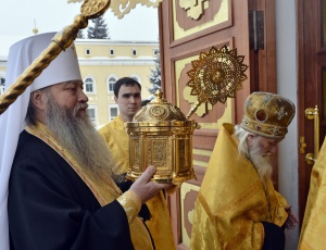 В Новосибирскую епархию прибыл ковчег с частицей мощей Святителя Иоасафа, епископа БелгородскогоВ Новосибирскую епархию прибыл ковчег с частицей мощей Святителя Иоасафа, епископа Белгородского. По благословению Высокопреосвященнейшего Тихона, митрополита Новосибирского и Бердского, в Новосибирскую епархию прибыл ковчег с частицей мощей Святителя Иоасафа, епископа Белгородского. Торжественная встреча ковчега состоялась 11 декабря 2012 года в 11 часов в Вознесенском Кафедральном соборе Новосибирска. Святыню доставили в Новосибирск участники семинара-практикума "Миссиология в духовном образовании". Святитель Иоасаф Белгородский - один из самых почитаемых русских святых. И сибиряки, несмотря на установившиеся сильные морозы, с духовной радостью пришли почтить Святителя и приложиться к частице его мощей. После торжественной встречи святыни митрополитом Тихоном был отслужен молебен Святителю Иоасафу Белгородскому. По окончании молебна ковчег с мощами святого был выставлен для всеобщего поклонения в Вознесенском Кафедральном соборе Новосибирска. В соборе он будет находиться до 12 декабря.