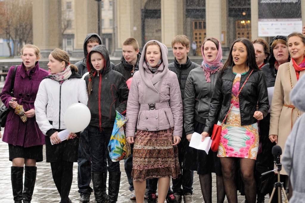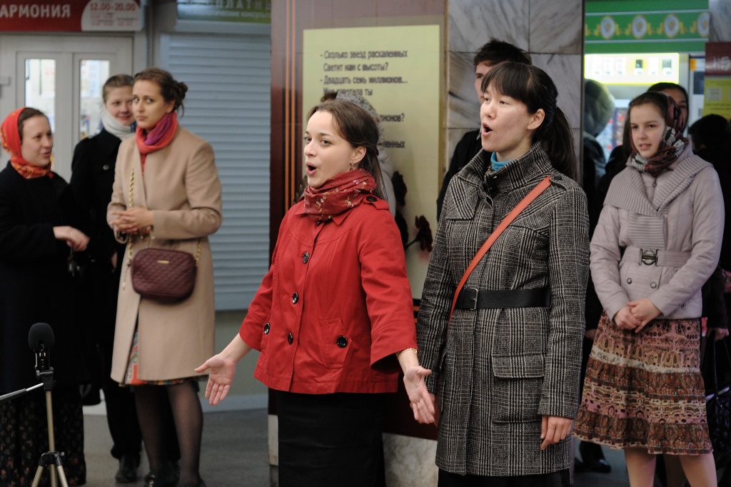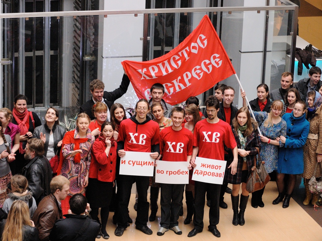 Со всеми ликуйте – Воскресе Христос!В Пасхальный день жители и гости Новосибирска были приятно удивлены. На центральной площади города перед Оперным театром и в торговом центре Сан-Сити прошли первые в столице Сибири православные флешмобы.