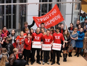 В ответ раздалось: "ВОИСТИНУ ВОСКРЕСЕ!" Далее все разошлись в разные стороны. Делясь впечатлениями, Ксения Рубцова особо отметила важность того, что простым людям доносится радостная весть и при этом разрушается старый стереотип. «Я считаю, что это дело полезное, - сказала Ксения.- Люди должны знать, что православные - это вовсе не темные, отсталые люди. Среди православных много современных, молодых и веселых! Из прохожих несколько человек присоединилось к нашей компании». Наша жизнь кажется чередой событий, пестрых по своему внешнему виду, но блеклых по содержанию. И очень важно напоминать самим себе и окружающим, что праздники, которые нам даны, призывают нас делиться радостью со всеми окружающими. И как очень верно подметила Екатерина Дубровская, пасхальный флешмоб показал, «что православная молодежь может делать интересные и современные (в хорошем смысле этого слова) вещи, что мы вполне можем браться за серьезные и ответственные дела».