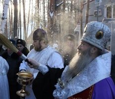 Владыке сослужили священники Новосибирской епархии, во время богослужения пел хор Александро-Невского собора. Вместе со священнослужителями в часовни молился начальник Западно-Сибирского УВД на транспорте генерал-майор милиции Юрий Ларионов. Небольшая часовня не могла вместить всех сотрудников милиции и слушателей центра, поэтому многие стояли у входа в часовню и не расходились до конца молебна, не смотря на тридцати пятиградусный мороз.