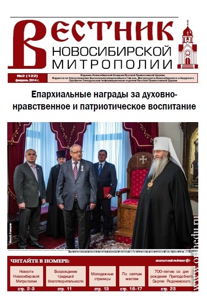 По благословению Митрополита Новосибирского и Бердского Тихона вышел в свет очередной выпуск газеты "Вестник Новосибирской Митрополии" № 2 (122), февраль 2014 г.