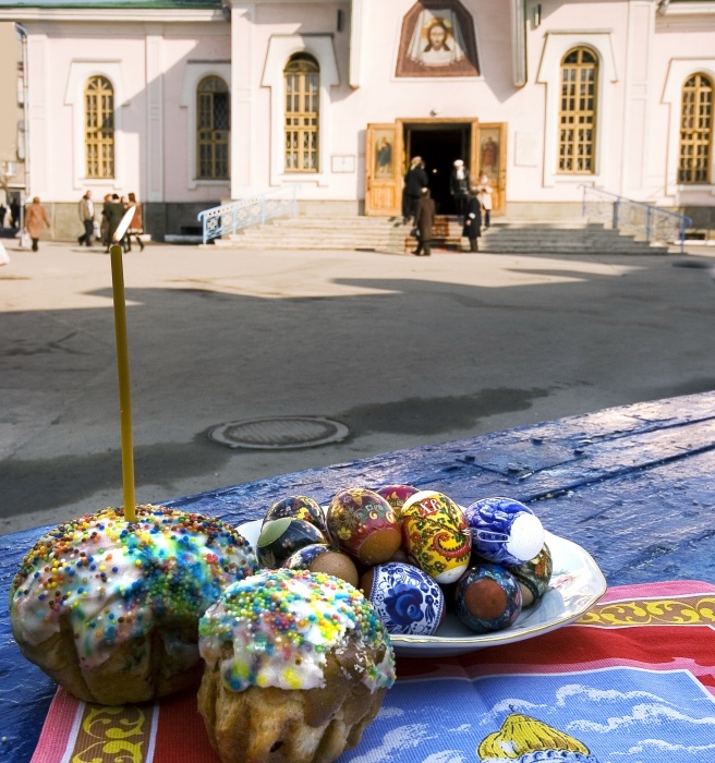 Полунощница - Отец Александр, в половине 12-го ночи хор начинает пение, которое удивительным образом ложится на сердце: в человеке возникают сложные чувства и тихой печали, и радостного томления. Что это за стихи? - «Волною морскою скрывшаго древле гонителя мучителя под землею скрыша спасенных отроцы; нo мы яко отроковицы, Господеви поим, славно бо прославися». Это великосубботний канон. В его таинственных словах, уже нет скорби, напротив душа улавливает в них радостное приближение Воскресения. - Во время пения, Святая Плащаница, выносимая на утрени Великой Субботы, уносится в алтарь и… - … и храм погружается в полумрак и напряженную тишину. Люди замирают в ожидании священной минуты. Светлая Утреня - И вот – полночь! Что происходит в этот момент? - Духовенство, облаченное во все белое, потому что белый цвет олицетворяет Божественный свет, воссиявший из Гроба Господня в момент Воскресения Христа, с крестом, Евангелием, иконами, хоругвями и кадилами, окруженные молящимися с зажженными свечами, под радостный, пасхальный звон колоколов, выходит из храма как бы навстречу грядущему Спасителю, с пением стихиры: «Воскресение Твое, Христе Спасе, Ангелы поют на небесех: и нас на земли сподоби чистым сердцем Тебе славити». Это нужно видеть! - Крестный ход вокруг храма в ночь на Пасху что-то ведь означает? - Движение Крестного хода символизирует жен-мироносиц, «минувшей субботе» спешащих к Гробу Господню, чтобы помазать Тело Христа ароматами. Обойдя вокруг храма, Крестный ход останавливается перед закрытыми дверями храм, как бы у входа во Гроб. И тут же раздается радостная весть… - «Христос воскресе из мертвых, смертию смерть поправ и сущим во гробех живот даровав»! - Раскрываются двери храма, и весь священный сонм торжественно вступает в сияющий огнями храм. - И начинается пение пасхального канона, состоящего из ряда кратких песнопений. Но какие это песнопения! - Пасхальный канон называют самым радостным поэтическим произведением церковной гимнографии: «Воскресения день, просветимся, людие: Пасха, Господня Пасха»… «Небеса убо достойно да веселятся, земля же да радуется» … «Ныне вся исполнишася света, небо же и земля, и преисподняя» … «Вчера спогребохся Тебе, Христе: совостаю днесь воскресшу Тебе»… Жизнь есть за гробом - вот высшая сущность пасхального торжества. - Год назад на Пасху я разговаривал с молодыми людьми, которые никогда не ходили в церковь, и в ту ночь впервые оказались в храме. Они были восхищены пением хоров, поражены обилием красок, и тем не менее особое, неизгладимое впечатление на них произвело огласительное слово святителя Иоанна Златоуста, особенно то место, где святитель говорит про «смерть, которая лишилась своего жала». Напомните, отче… - «Смерть, где твое жало? Ад, где твоя победа? Воскрес Христос - и ты повержен. Воскрес Христос - и пали демоны. Воскрес Христос - и радуются ангелы. Воскрес Христос и Жизнь пребывает»! Пасхальная литургия - Пасхальная литургия тоже ведь представляет собой нечто особенное! - Она вся наполнена радостью Воскресения, хор неустанно повторяет Воскресный тропарь, одно пасхальное песнопение сменяется другим. Вместо Трисвятой песни «Святы́й Бо́же, Святы́й Крепкий, Святы́й Бессмертный, помилуй нас» поется: «Елицы во Христа крестистеся, - во Христа облекостеся!» Это облечение во Христа здесь означает у