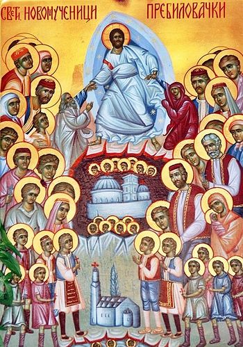 ![]() К лику святых отныне причислены святые мученики Пребиловацские (память 24 июля/6 августа), святитель Мардарий (Ускокович), епископ Американский и Канадский (память 29 ноября/12 декабря), и преподобный Севастиан (Дабович) Джексонский (память 17/30 ноября). Мученики Пребиловацкие пострадали в 1941 г. во время террора усташей, проводивших в марионеточном Независимом хорватском государстве (1941-1944) политику геноцида сербского населения. Пребиловцы – старинное и богатое сербское село в Герцеговине, в котором до 1941 г. проживало около 1000 человек. Здесь в течение лета 1941 г. усташами были зверски убиты 820 жителей села. Только за время так называемой Ильинденьской резни за один день 6 августа было убито 550-600 женщин и детей, которых усташи сбросили живьем в пропасть. ![]() Святитель Мардарий (Ускокович) (1889 – 1935) стал первым сербским архиереем на американском континенте с титулом епископ Американский и Канадский. С его именем связано дело административного устроения первой сербской епархии в США и Канаде. За двенадцать лет проведенных перед этим в России будущий архиерей немало потрудился и на благо Русской Церкви. Преподобный архимандрит Севастин (Дабович) (1863 – 1940) всю свою жизнь посвятил миссии и служению Церкви, в первую очередедь на Американском континенте, где родился в семье сербского эмигранта. Архимандрит Севастиан руководил Сербской духовной миссией и ему принадлежат неоценимые заслуги в организации церковной жизни.