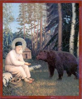 Св. Серафим Саровский и медведь. Икона: Фото: www.st-nikolas.orthodoxy.ru