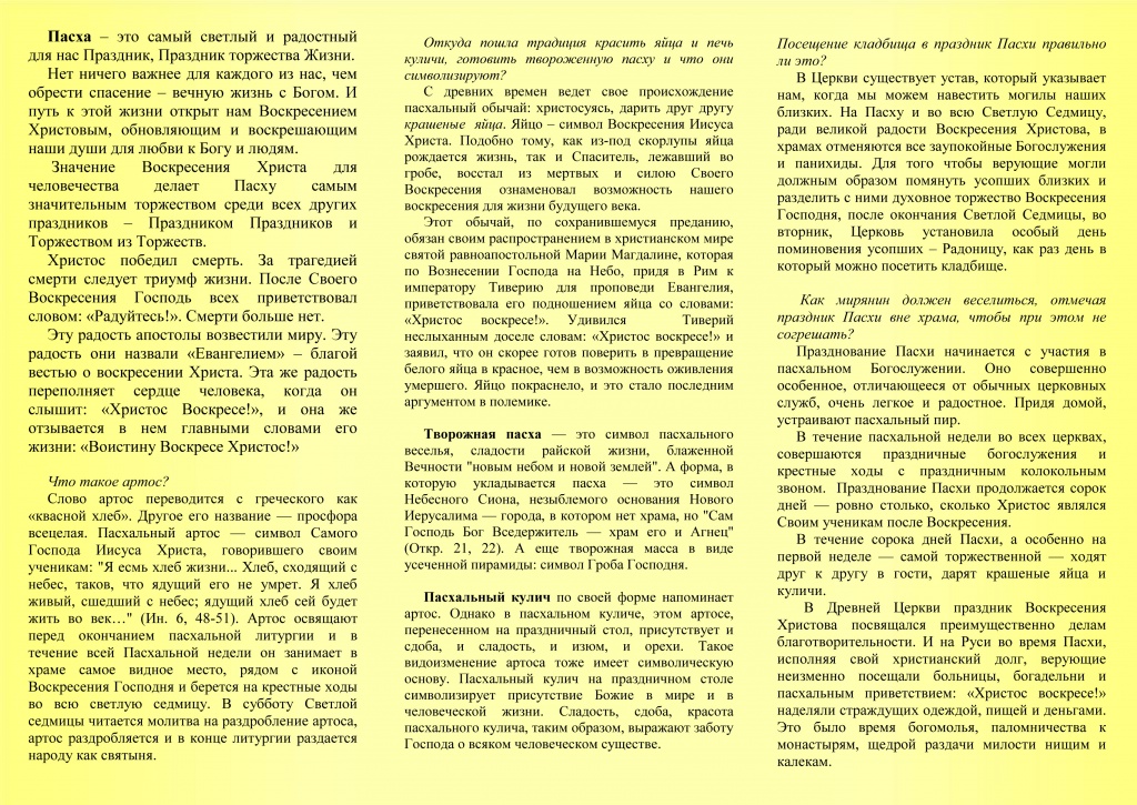 Информационный буклет к ПасхеВоспользуйтесь как раздаточным материалом