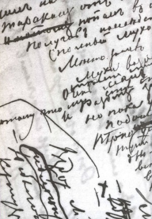 Необычайно эффектна, например, история виршеплёта-графомана, сперва возникшего в качестве героя, достойного жалости: карикатурного «рыцаря бедного», дважды пародийного донкихота (неосуществлённый роман или повесть о Михаиле Картузове), через некоторое время «раздвоившегося» на сентиментального поклонника гордой красавицы и скандального хама (подготовительные материалы к «Бесам»), а потом окончательно превратившегося в вульгарного дебошира, шантажиста и шута (окончательная редакция «Идиота»). Образ этот — сами видите, насколько живучий, — был принципиально важен для Достоевского: бросив мысль о том, чтоб посвятить такому жалкому существу отдельный роман или повесть, писатель, тем не менее, упорно сохраняет его в качестве персонажа второго плана и обрисовывает самыми яркими красками, причём основной характеристикой его остаётся пристрастие к виршеплётству (в результате чего, кстати, мерзавцу Лебядкину достаётся значительная часть поэтического наследия бедолаги Картузова — в частности, басня о таракане). Думается, эволюция образа «жалкого рыцаря» достойна более пристального и внимательного рассмотрения, особенно если учесть его — истинную или мнимую? — автобиографичность: недаром и сам Достоевский виделся современникам как «витязь горестной фигуры» (1).