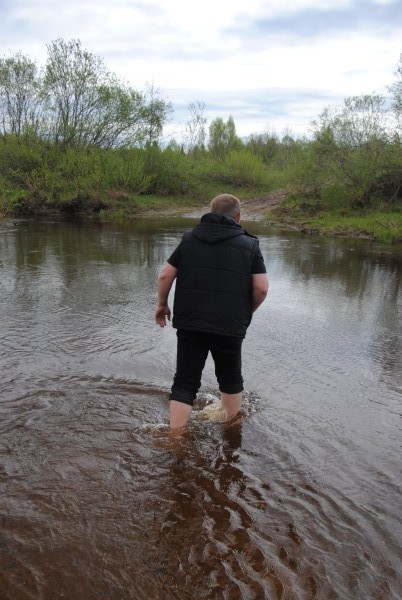 Джиперы писали, что летом, если оно не дождливое, там воды по колено. Но на дворе был месяц май, и Вася полез проверить уровень воды штоб рассчитать брод