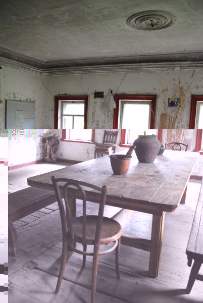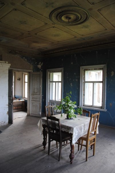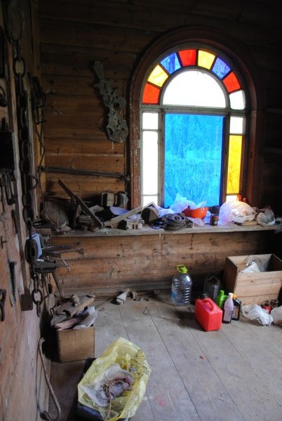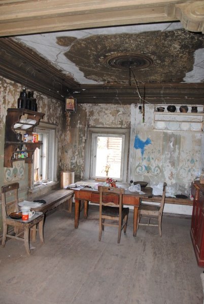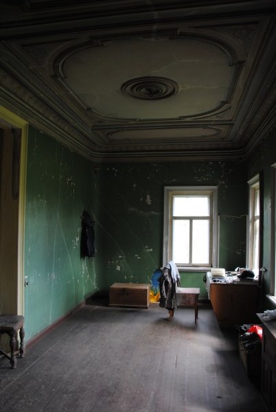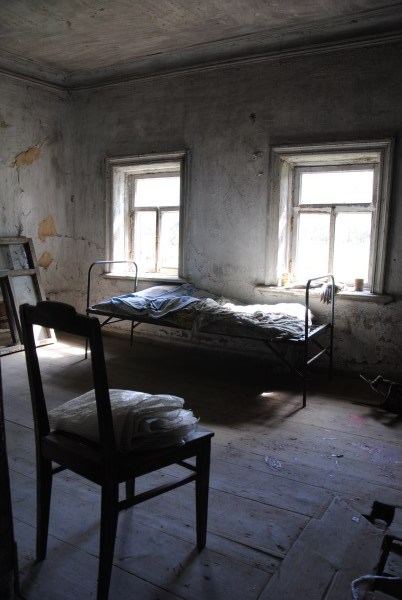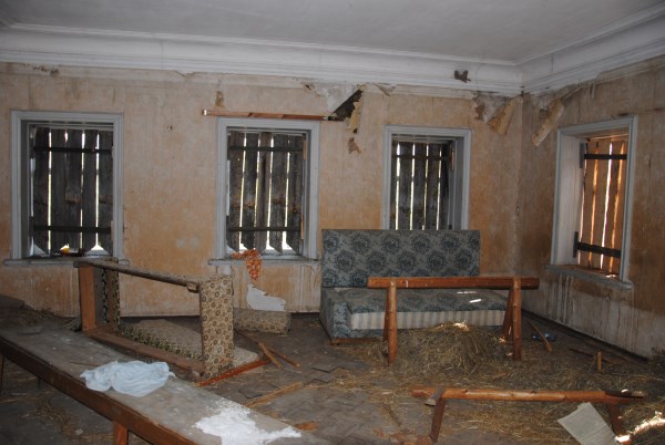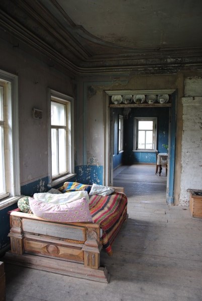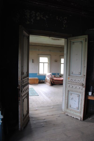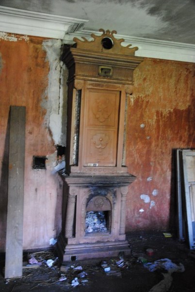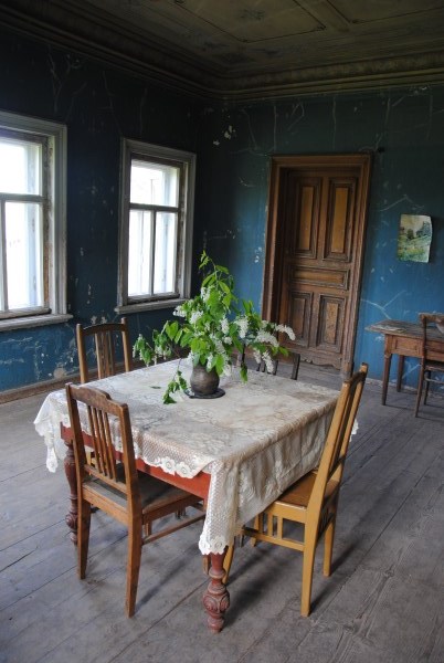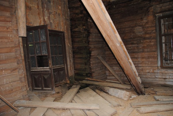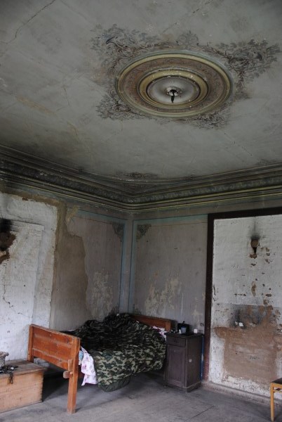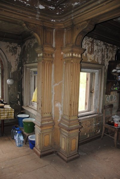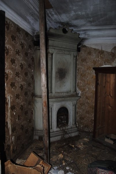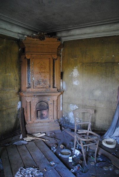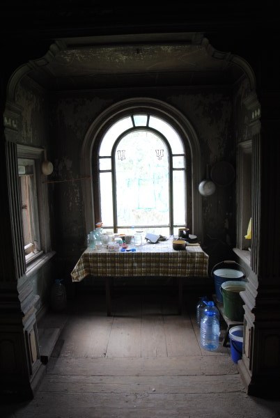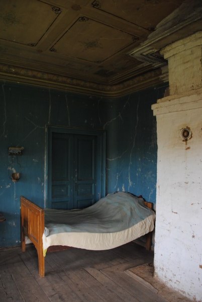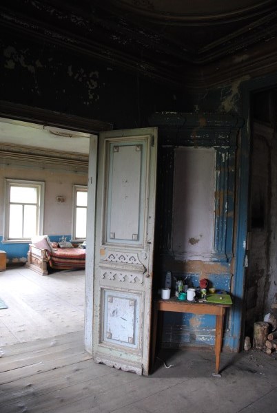 Ну и еще одна комната на первом этаже - та самая, в которой доживал свои дни Иван Иванович. Она небольшая, в ней обезображенная печь, хотя раньше, судя по всему, была удобнейшая чистая голландка с лежаком в резной нише - что бывает приятнее, чем погреться в студеный вечер? Но годы и люди унесли этот домашний поляшовский уют.