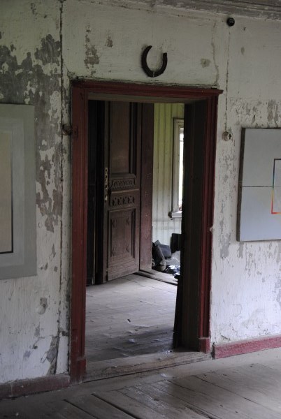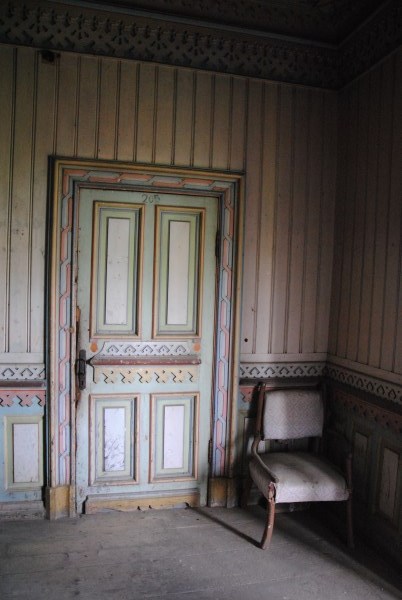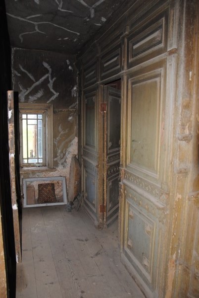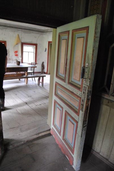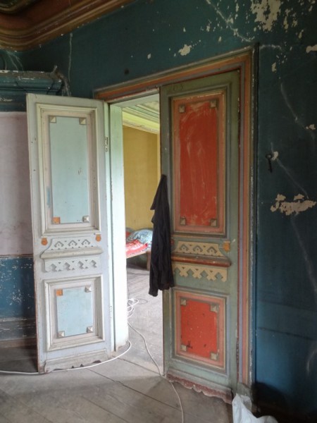 Дверь из западной в южную гостиную. Она была светлой и теплой, поэтому колор в ней был бордовым. И тут за дверью видна печь - вот тут в белой нише, видимо и было зеркало в лепной раме