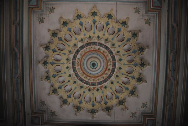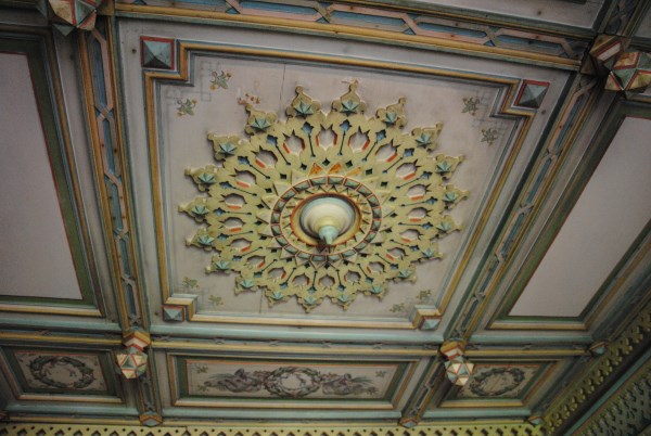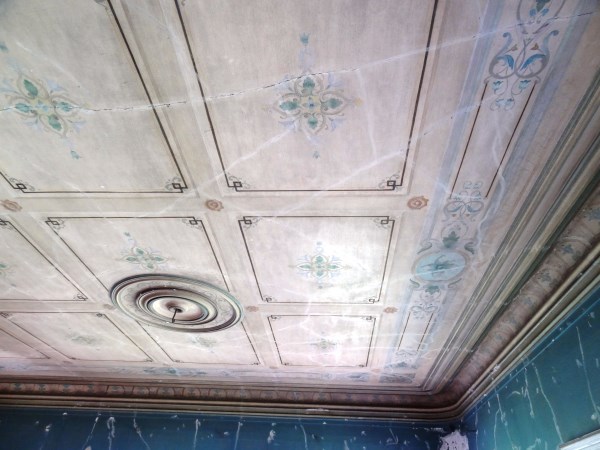 А дальше - круговая анфилада комнат. Когда-то они имели свои цвета - розовый, зеленый, бордовый - по колору росписи. Сейчас угадать уже непросто. Это северная гостиная.