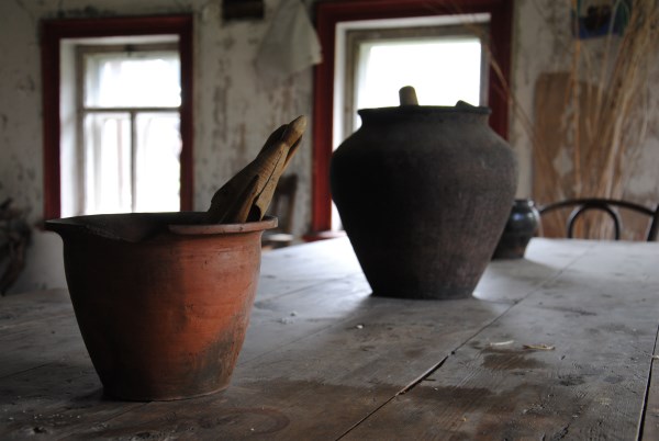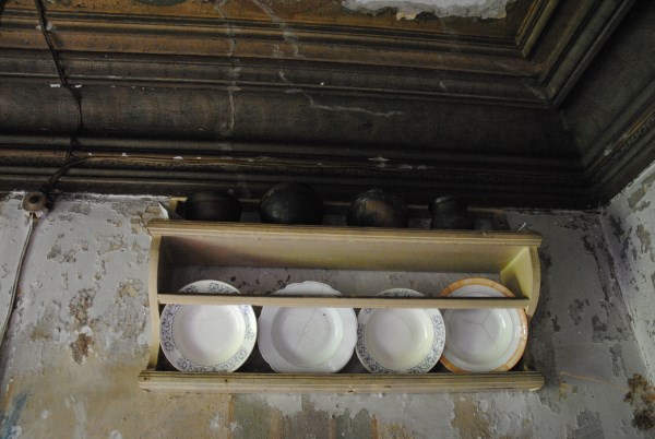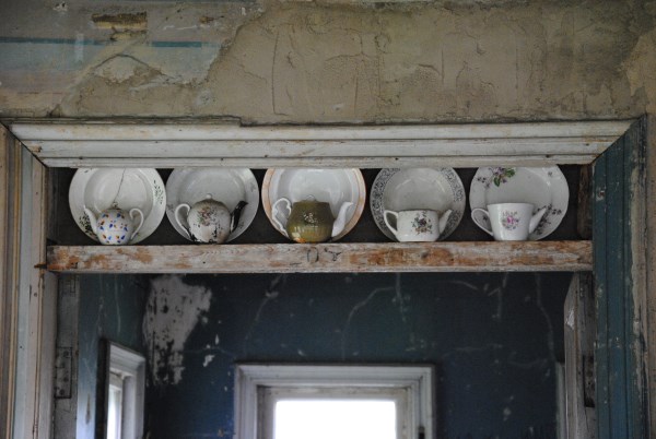 Коллекция чайников-найденышей над дверью в северную залу