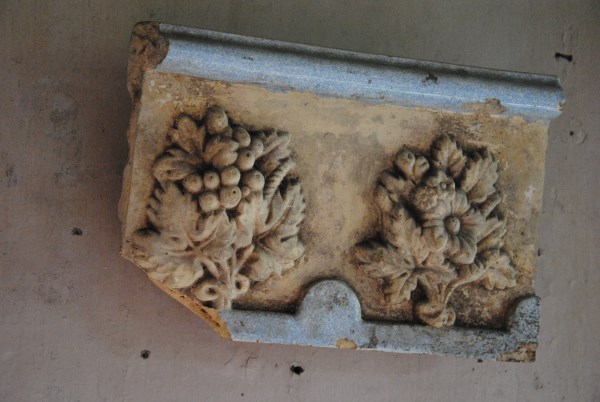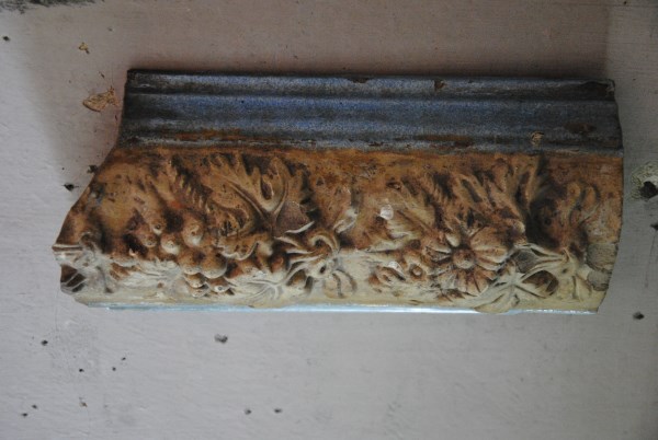 По стенам Анатолий Иванович развесил осколки печных украшений, сколотых еще в советские годы и найденные в строительном мусоре. Возможно, это были лепные обрамления зеркал, которыми часто украшали печи в гостиных