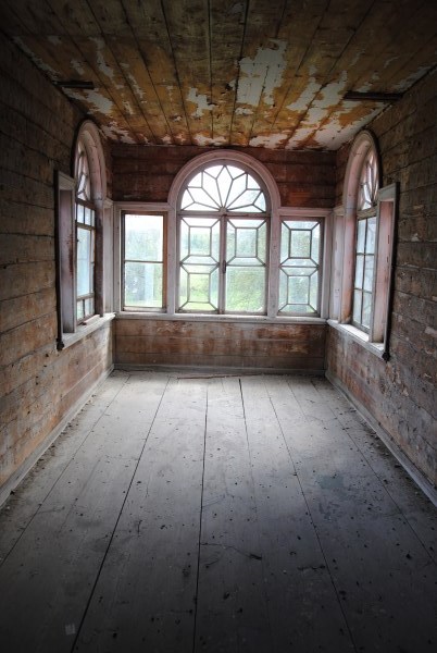 А какие там окна! С родными стеклами, которые местами цветные. Сколько они видели - от счастливой семейной жизни своего первого хозяина до революционного безвременья и смерти Погорелово. В эти окна заглядывает Небытие...