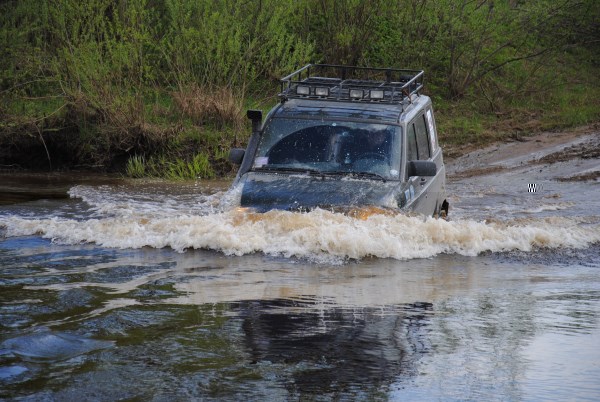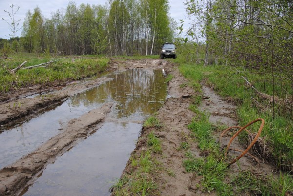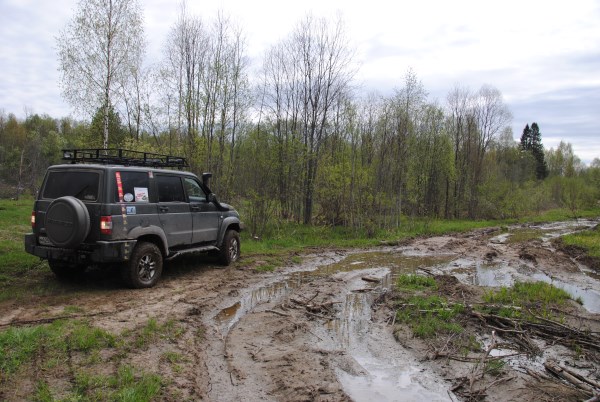 Пешком проходим до болота, проходим его, садимса в машину и форсируем реку