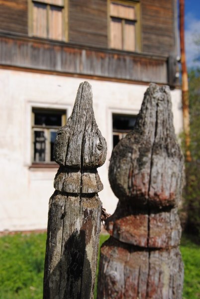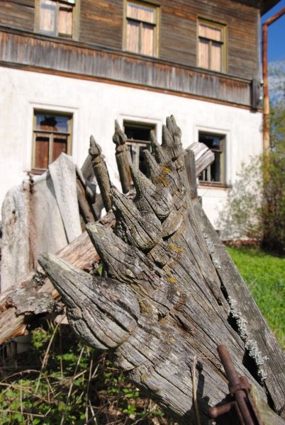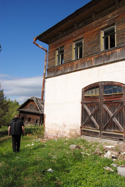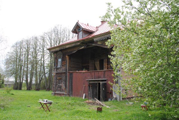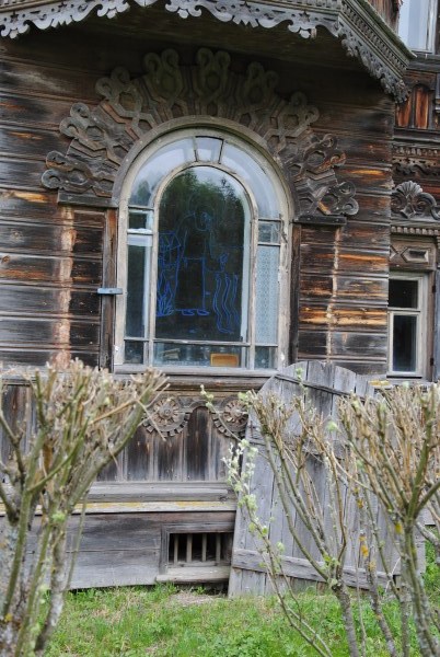 И вот по дороге в Гольцово, еще не доезжая до моста мы останавливаемся в другой мертвой деревне - в бывшем Венгино. Там тоже стоит замечательный крестьянский дом. Не такой роскошный как терем Поляшова, но тем не менее, весьма примечательный.
