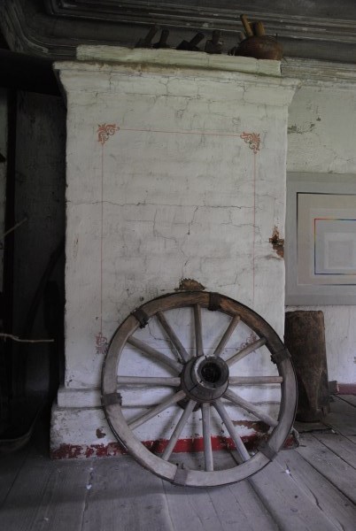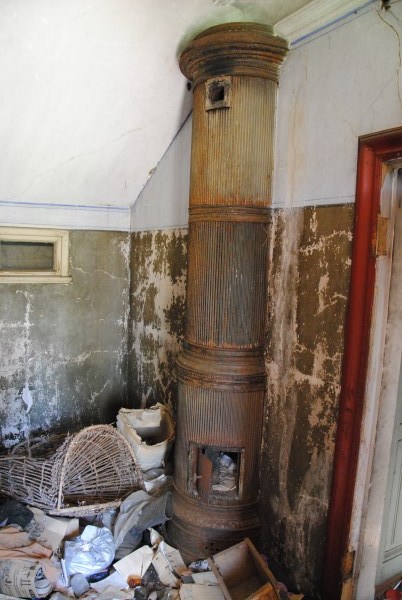 Печка в ней переложена в советские годы и получилась простой крестьянской, а была нарядная, изразцовая. Кстати, говорят, что система отопления в доме была уникальная. После затапливания дым из труб начинал идти только часов через пять - это удивляло и пугало, а потому печи нарушили и сделали по-простому.