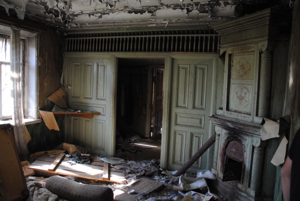 Идем дальше по комнатам. Они сделаны почти также, как в поляшовском доме - круговая анфилада на первом каменном этаже. Потолки ниже, комнаты меньше. Росписей нет. А беспорядок и разруха составляют не такое светлое впечатление о доме, как терем. Единственное примечательное тут - камины.