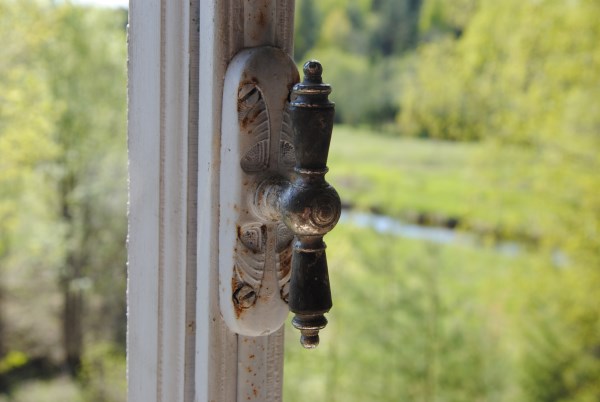 Обратите внимание на оконную ручку - это целая система закрывания и открывания окон. До сих пор все исправно. Правда, местами вандалы уже отрывают их
